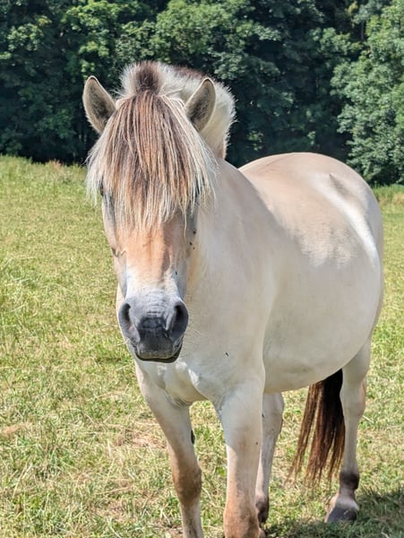 Per riduzione del nostro allevamento, vendiamo la nostra bellissima e grande cavalla Fjord, Lavinia. È nata nel 2019 e ha un'altezza di circa 147 cm. È docile nel maneggio, è ferrata e sa viaggiare bene in trailer, oltre a conoscere il lavoro in longia. Nel 2026 sarà gravida di Killimanjaro. Per ulteriori informazioni e foto, non esitate a contattarci.