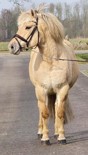 For sale is a truly sweet Fjord mare. Trudi is absolutely typical of her breed. She learns quickly, is very resilient and steady, and has a willing work ethic. She is also extremely people-oriented and genuinely affectionate. She rides calmly in the terrain, both in a group and alone. Nothing fazes her, whether it's road traffic or a spooky tarp. Since she maintains very close contact with her handler when leading and working from the ground—even when inexperienced or nervous riders are on her—she could also make a wonderful therapy horse. In the arena or on the riding ground, she is full of confidence but shows no bad habits such as bucking or rearing. Kicking, biting, and similar behaviors are completely foreign to her. Trudi is available for a trial ride and can be tested on site. To avoid tourism riding, a fee of €30 applies for the trial ride, which will be credited towards the purchase price if she is bought.