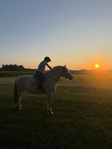 I am selling my eleven-year-old Fjord gelding to caring and experienced hands, due to personal reasons. Lennox has been in my possession since he was 2.5 years old. He has an estimated height of about 150 cm, making him suitable for light adult riders as well. He has been trained in a variety of disciplines: dressage, jumping, groundwork, lunging, trail riding, clinics, and competitions. Additionally, he regularly participates in equine-assisted therapy sessions with an acquaintance. When he was fully in training, he competed at a solid A-level in dressage. However, we were unable to showcase this at competitions because he tends to react quickly to his environment on dressage arenas. In jumping, he was very successful and accumulated many ribbons. He also placed third at his first eventing competition. Lennox is very eager to learn and has a good work attitude. However, he needs variety—otherwise, he quickly loses interest. He thrives when challenged appropriately and is not a pony for "casual once-a-week rides." Due to my professional commitments and lack of time, we are currently mainly engaged in leisure riding: light dressage work, groundwork, tensegrity training, and short hacks. This not only benefits his body (and his tummy 😉) but also keeps his mind engaged. Lennox is a friendly, affectionate, and very people-oriented pony who requires clear, calm, and consistent leadership. He is not suitable for beginners. In certain situations, he can be spooky or uncertain, and may overreact to things that are actually harmless. He is currently kept in a small open stable, is very social and compatible with other horses, but tends to be dominant and playful. He spends half a day on pasture, which is sufficient for him. A management routine with regular turnout, plenty of movement, and fresh air is ideal for his well-being. In terms of character, Lennox is an alert, motivated pony who enjoys working and being engaged. He needs variety and people who enjoy working with him in multiple disciplines. With the right approach, he is a wonderful, motivated partner who always puts his heart into his work. Additionally, Lennox is not a weight carrier. Health-wise: Lennox has a veterinary-documented condition in his right hind leg (occasional tendon irritation), which currently does not restrict him in daily life. During intensive activity, such as frequent competitions or jumping, this issue may reoccur. He has never shown any pain. Corresponding X-rays are available. In his last examination, a mild lung condition was also detected—not diagnosed as asthma, but he tends to cough occasionally in summer. Therefore, I am looking for a respiratory-friendly environment with plenty of fresh air and outdoor movement for him. I am not selling to dealers or riding schools, but to someone who truly appreciates him, can give him time, variety, and good care. Price is secondary to his well-being! If you are genuinely interested, I am happy to share more about him.