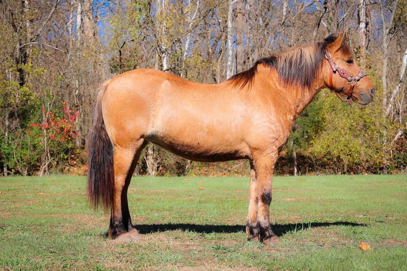 ONLINE AUCTION Place your bids at www.PlatinumEquineAuction.com Starting Bid $3500 Auction ends November 17th, 2024 Need a new saddle? Check out White Rock Saddles on our website or Facebook! This is “CHICKEN KABOB”, an extraordinarily gentle, quiet, and safe NORWEGIAN FJORD QUARTER HORSE CROSS MARE that is broke to ride and drive. This mare is family and youth friendly. She has been driven, ridden, and handled by novice equestrians and timid riders and drivers. She is quiet and will not go any faster than you ask of her. She stops with ease and stands patiently until asked to move out. She has been on weekend wagon trains, she has been in parades, and hooked to all farm machinery. She will plow the garden, haul the manure, and win blue ribbons in the hitch classes. She is very quiet to ride and will cross water and all other trail obstacles quietly. She rides out alone, is good to lead or follow in a group, and will go anywhere you ask her willingly. She is kind, patient, honest, and true every time you get her out. She stands quietly to be harnessed, hitched, mounted, tacked, and groomed. Excellent family horse the whole tribe can enjoy, whether you love riding or driving, you will appreciate her confident relaxed demeanor and her friendly personality. This mare is truly the hard to find kind. She is the right size, has the right temperament, the training, the ability, and the mind to make her new owners proud. She is 14 years old and stands an attractive and muscular 14.3 hands tall. For more info call HH Horses Erin 304-238-4155 Located in Flemingsburg, KY. ONLINE AUCTION Place your bids at www.PlatinumEquineAuction.com Starting Bid $3500 Auction ends November 17th, 2024 Need a new saddle? Check out White Rock Saddles on our website or Facebook!