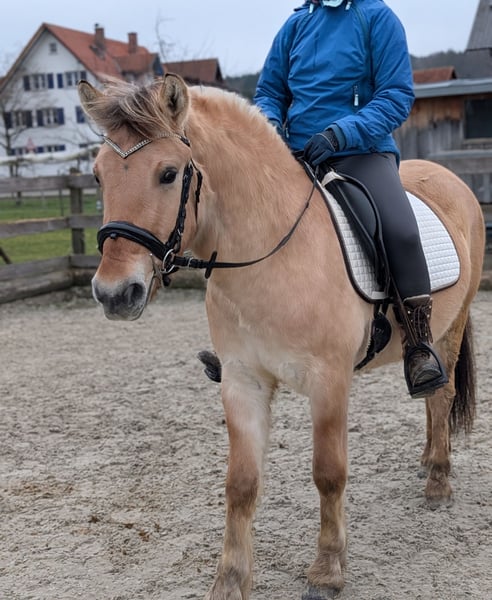 Unser Norweger Wallach Neptun sucht ein neues Zuhause. Der freundliche Wallach ist 3,5 Jahre alt und hat aktuell ein Stm von 1.41m. Neptun läuft brav in allen Gangarten auf dem Platz und im Gelände. Für sein Alter einfach ein tolles Pony. Auf dem Platz ist er auch von Kindern und schwächeren Reitern zu händeln. Im Gelände ist er fleißig, jedoch unerschrocken und nervenstark. Er geht auch ohne Probleme allein vom Stall weg. Braucht dann jedoch einen klaren Reiter der ihn gut begleiten kann. Ich könnte ihn mir gut als Wanderreitpferd vorstellen da er einen tollen, raumgreifenden Schritt hat. Auch als Therapiepferd würde er sicher eine gute Figur machen da er die nötige Ruhe mitbringt. Das Pony wäre auch toll für ein Mutter Kind gespann, da er durch seine Statur auch Erwachsene gut abdeckt. Er wurde auch schon ein paar Mal zweispännig gefahren was er gut macht. Der verspielte Wallach steht aktuell nachts in der Box und am Tag auf der Weide. Er wurde regelmäßig entwurmt und dem Hufschmied vorgestellt ( er läuft Barhuf)
