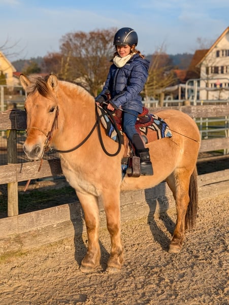 Il nostro castrone norvegese Neptun cerca una nuova casa. Il cavallo amichevole ha 3,5 anni e attualmente misura circa 1,41 m al garrese. Neptun si muove con calma e sicurezza in tutte le andature sia in paddock che in passeggiata. Per la sua età, è davvero un pony fantastico. In maneggio è facilmente gestibile anche da bambini e cavalieri meno esperti. In campagna, è diligente, ma anche coraggioso e resistente allo stress. Parta senza problemi anche da solo dal box, anche se necessita di un cavaliere deciso e capace di accompagnarlo bene. Lo vedrei molto bene come cavallo da trekking, grazie al suo passo ampio e spazioso. Può essere anche un ottimo candidato come cavallo terapeutico, poiché possiede la calma necessaria. Il pony sarebbe ideale anche come team mamma-figlio, dato che la sua statura permette di coprire bene anche gli adulti. È stato già trainato in doppio a volte, cosa che gestisce molto bene. L’amichevole castrone sta attualmente in box di notte e al pascolo durante il giorno. È stato regolarmente sverminato e portato dal ferratore (che lo mantiene barefoot).
