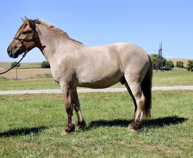 ♦️𝐍𝐄𝐖 𝐘𝐄𝐀𝐑'𝐒 𝑬𝒙𝒕𝒓𝒂𝒗𝒂𝒈𝒂𝒏𝒛𝒂♦️ Happening now thru MONDAY | JANUARY 12th - Available EXCLUSIVELY on HorseBid's website! For more details and to register visit: www.Horsebid.com CONSIGNOR CONTACT: MC Quality Riding Horses 330-307-0323 LOCATION: Battle Creek, IA BREED: Fjord/Brabant REGISTERED: No REGISTERED NAME: Eeyore COLOR: Dun Roan HEIGHT: 15.3 AGE: 5 GENDER: Gelding Once-in-a-Lifetime FJORD/BRABANT Gelding – Ride & Drive – Safe, Sane, and Sound If you are searching for a horse that truly stands apart from the rest, Eeyore is that horse. It is rare to find one with this level of mind, His personality is one of his greatest qualities—kind, affectionate, and simply impossible not to love! Eeyore is a 15.3-hand, 5-year-old roan Fjord/Brabant Draft cross gelding with a solid build, beautiful bone, and an exceptionally kind expression. He is the type of horse people spend years searching for—and very few ever find. Temperament & Personality Eeyore is genuinely kind, quiet, and people-oriented. He meets you at the gate every day and truly enjoys attention. He is not pushy, nervous, or herd bound. He gets along well with other horses and has been exposed to all types of livestock. His personality is unmatched—loving, willing, and eager to please. This is a horse you can trust to have the same demeanor every ride, whether he is worked daily or left off for weeks. Handling & Ground Manners • Stands quietly tied for brushing, bathing, saddling, and bridling • Easy to catch, lead, and handle • Stands well for farrier and routine care • Loads and hauls well • Excellent manners on the ground and around other horses and livestock Under Saddle Eeyore is a confident, enjoyable ride that is safe and fun for a wide range of riders. He rides alone or in a group and is not buddy sour. • Walks, trots, and canters willingly • Smooth, comfortable gaits • Steady, honest, and forgiving • Will go any direction you point him • Confident crossing creeks, ditches, mud, water, and uneven terrain • Not spooky and stays level-headed in new environments He has been ridden everywhere—from trails to highways, and even into town. Traffic, commotion, and new situations do not bother him. Driving Eeyore is also broke to drive and does it exceptionally well. He is quiet, responsive, and confident whether driving around the pasture or down the road. He would make an excellent carriage, pleasure, or family driving horse. Versatility Eeyore is the definition of a true all-around horse: • Trail riding • Pleasure riding • Riding alone or in groups • Driving / carriage work • Livestock exposure • Family or confidence-builder type Soundness & Care • 100% sound • Solid feet and bone • Easy keeper • Healthy and ready to go to work or enjoy! The Kind You Don’t Replace Eeyore is the kind of horse that becomes a once-in-a-lifetime partner, not just a ride. Safe, sane, versatile, and genuinely enjoyable to own, he is the type people wish they had bought when they had the chance. Horses like this are incredibly hard to find—and even harder to replace. After nearly two years of owning Eeyore and countless miles together, I can honestly say he has been a joy every step of the way. He is now looking for the forever family he deserves!