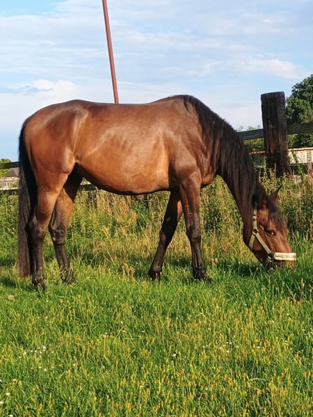 Zum Verkauf steht eine 4-jährige französische Traberstute mit hervorragender Abstammung – Vater: Quaker Jet, Mutter: Bavaria du Moulin. Sie wurde ursprünglich aus Frankreich nach Deutschland geholt, da sie durch ihre Blutlinie und ihren Charakter als besonders vielversprechend gilt. Sie ist bereits mehrere Rennen mit Sulky als auch unterm Sattel gelaufen. Die Stute hat Rennbahnerfahrung und zeigt auch heute noch deutlich ihren starken Renndrang – sie liebt die Bewegung, das Tempo und das Arbeiten. Sie wurde bereits angeritten und kennt Bodenarbeit, doch man merkt schnell: Als reines Freizeitpferd ist sie nicht ausgelastet. Sie braucht Herausforderungen, intensive Arbeit, Bewegung und Aufgaben, bei denen sie ihr enormes Potenzial ausleben kann. Durch ihre Leistungsbereitschaft und ihren ehrgeizigen Charakter wäre sie für den ambitionierten Reiter oder Trainer ein spannendes Projekt – jemand, der Freude daran hat, ein sensibles, williges Pferd zu fördern und ihr gerecht zu werden. Aufgrund ihrer Ausdauer und ihrem Bewegungsdrang wäre sie auch für Distanzritte geeignet. Ambitionierte Freizeitreiter, die sie viel bewegen können, könnten auch auf ihre Kosten kommen. Auch für die Zucht ist sie interessant, sollte das in Zukunft ein Thema sein – ihre Abstammung spricht für sich. Eine Abgabe als reine Zuchtstute kommt für mich jedoch nur als allerletzte Option in Frage. Die Stute ist regelmäßig geimpft und entwurmt, kerngesund und wurde im April einer kleinen AKU unterzogen – ohne Befund. Mir ist Platz vor Preis sehr wichtig. Ich wünsche mir für sie ein Zuhause, in dem sie viel Auslauf, Bewegung und Weidegang hat – ein Ort, an dem sie glücklich sein und ihre Energie sinnvoll einsetzen kann. Aufgrund ihres Temperaments ist sie weder ein Kinderpony noch anfängergeeignet. Genaueres gerne per Mail oder telef. 017643741837