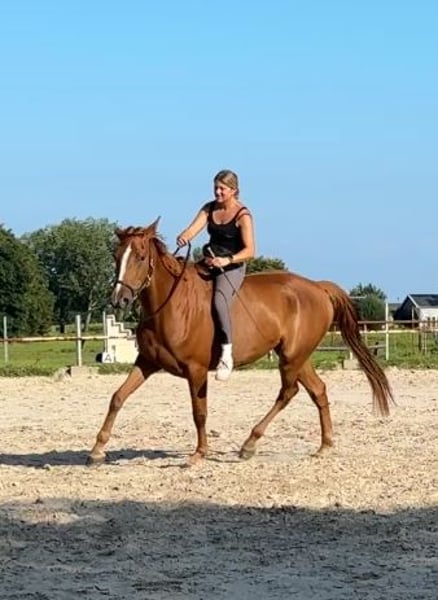 Liv is a stunning, honest mare born in 2021 (French Standardbred, 16.1 hh) with a wonderful temperament and a highly willing work ethic. She is calm on unfamiliar terrain, steady in the woods, and approaches new tasks with great enthusiasm. Liv has participated in dressage, jumping, and cross-country lessons, consistently demonstrating her quick learning ability across all disciplines. She responds well to leg aids, is familiar with lateral movements, and shows a nice jump. She enjoys jumping and cross-country riding with visible pleasure. In handling, Liv is a true cuddle: affectionate in the stable, easy to manage with the farrier, dentist, and when loading onto the trailer. She is eager to work and has a friendly nature, but is not suitable for a complete beginner. She naturally tends to move a bit faster and is still working on her balance, making her best suited for a rider with some experience. Price: €8,500 No rush to sell; Liv will only go to the right match. Videos and more information available upon request.