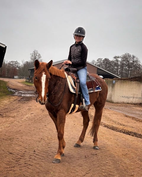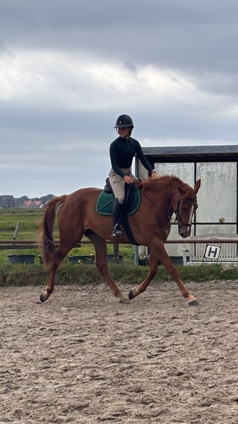 Liv is een prachtige, eerlijke merrie uit 2021 (Franse draver, 1.66m) met een gouden karakter en een super werkwillig hart. Ze is braaf op vreemd terrein, nuchter in het bos en pakt nieuw werk met veel plezier op. Liv is mee geweest naar dressuur, spring en crossles, en laat in alle disciplines zien dat ze snel leert. Ze is goed aan het been, kent de zijgangen en laat een leuke sprong zien. Springen en crossen doet ze met zichtbaar plezier. In de omgang is Liv een echte knuffel: lief op stal, makkelijk bij de hoefsmid, tandarts en op de trailer. Ze wil graag werken en heeft een vriendelijk karakter, maar is niet geschikt voor de echte beginner. Ze loopt van nature graag iets harder en zoekt nog wat meer balans, waardoor ze het best tot haar recht komt bij een ruiter met enige ervaring. Vraagprijs: €8.500,- Geen haast met verkoop, Liv gaat alleen weg bij de juiste match. Video’s en meer informatie op aanvraag.