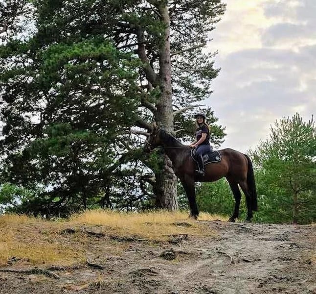 Na zlecenie koleżanki do sprzedaży ⚡️ LOPE ⚡️ 🐎 4 lata – 1,70 m – Francuski Tinker 💛 Obiecujący młody koń o wspaniałym charakterze i prawdziwej chęci do pracy 💛 ✨ Charakter i cechy: • Odważny, bez złych nawyków (jest jeżdżony na lonży nawet przez 7-letnie dziecko) • Chętny i uczciwy, w codziennym użytkowaniu bezproblemowy ❤️ Bardzo towarzyski koń, związany z ludźmi, który doskonale rozwinie się z przyszłym jeźdźcem. Stworzony, aby nawiązać prawdziwą relację. 👤 Idealny dla pewnego siebie i spokojnego jeźdźca, który może go dalej rozwijać i pokazać mu wielki, szeroki świat. ⸻ 🐎 Praca pod siodłem i w hali: • Prezentuje trzy piękne podstawowe chody • Przechodzi przez przeszkody • Jeszcze nie skakałem z nim • Jeszcze zielony w pracy, ale uczy się szybko i z dużą radością oraz zapałem. ⛰️ W terenie: • Samodzielnie chodzi w teren 1-2 razy w tygodniu we wszystkich trzech chodach. • Generalnie przechodzi wszędzie, jest jednak bardzo ciekawy krów z dzwonkami. ⸻ 🐴 Forma utrzymania: obecnie przebywa w stadzie. Życzę mu tego również w przyszłości. Aktualnie jest bez podków i jeździ w ochraniaczach na kopyta. ⸻ 📍 Możliwość oglądania i jazdy próbnej w kantonie Neuchâtel.