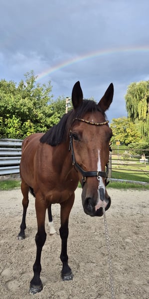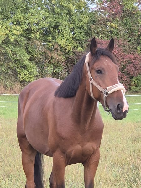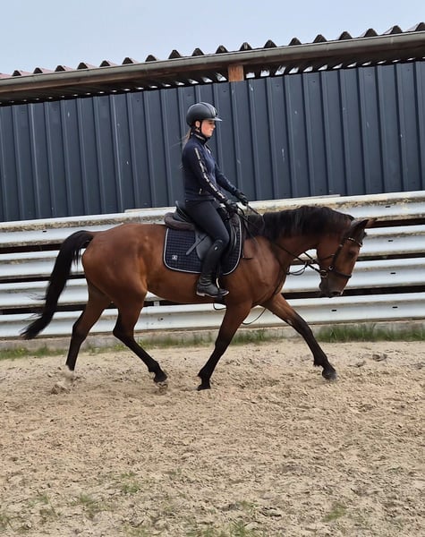 Verkaufe hübsches Freizeitpferd Französischer Traber ( Trotteur français) 5j. 158cm. Wird seit September angeritten Schritt, Trab auf dem Platz ( kann galoppieren muss er aber unter dem Sattel noch lernen) macht er alles lieb mit war paar mal in Begleitung eine kleine Runde im Gelände, das war problemlos möglich. Kann vorgeritten werden. Braucht natürlich noch weitere Ausbildung von daher noch nicht für Anfänger geeignet. Die Anfänge sind gemacht. Zähne wurden im Juli gemacht, Großes Blutbild im September, Ostheopat auch im September. Influenza und Tetanus geimpft. Kein Wartungsstau. Er ist sozial verträglich rangniedrig bis mittelrangig. Für einen Traber hat er ein gutes Exterieur und kann auch 80kg tragen. Er wurde im Sulky gefahren ich habe aber keinen. Da das die letzten 2 Jahre seine Hauptaufgabe war wird er es sicher Routiniert beherrschen. Schmied, Verladen kein Problem. Platz vor Preis
