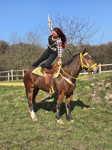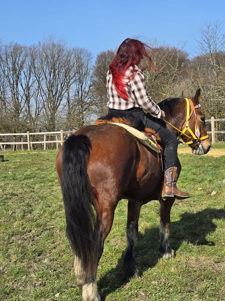 Cheval de Freiberger fiable – doux et polyvalent DEESSE est un véritable cheval de rêve ! Âge : 8 ans Taille : environ 1,54 m (16.1 hh) Prix : 7 900 € AKU : disponible ✨ Description : Cette jument de Freiberger de 8 ans séduit par son tempérament équilibré, calme et sa manière agréable au quotidien. Elle est amicale, attentive et totalement facile à gérer au box, au pansage et à la longe. Sous la selle, elle se montre fiable et agréable à monter. Elle travaille avec motivation sur la carrière et est particulièrement une excellente partenaire en extérieur – détendue, sûre sur ses appuis et toujours manipulable. De plus, elle a été conduite en attelage et connaît le travail devant la voiture. Là aussi, elle se montre sage et sûre. Une partenaire de loisir sincère et polyvalente, qui donne à son cavalier une sensation de confiance constante. Convient pour : Les cavaliers de loisir recherchant une jument équilibrée, sûre en terrain varié et déjà conduite en attelage. Idéale pour des sorties détendues, le travail en manège et le loisir en voiture. Nos chevaux sont régulièrement : – vermifugés – suivis par le maréchal-ferrant – contrôlés osteopathiquement Écurie : Selles western, brideries & accessoires Transport et équipement adapté disponibles à prix avantageux sur demande Notre service : ✅ Droit d’échange de 3 mois ✅ Essai : 35 €, chaque cheval supplémentaire 25 € (à déduire lors de l’achat le jour même) ✅ 100 € de remise immédiate lors de la récupération ou du transport le même jour ✅ Conseils personnels et sincères Pour toute demande, uniquement par téléphone : 0171 – 4001968 Disponible tous les jours de 8h à 20h ⚠️ Pas d’e-mails ni WhatsApp ⚠️ Toutes les informations sans garantie