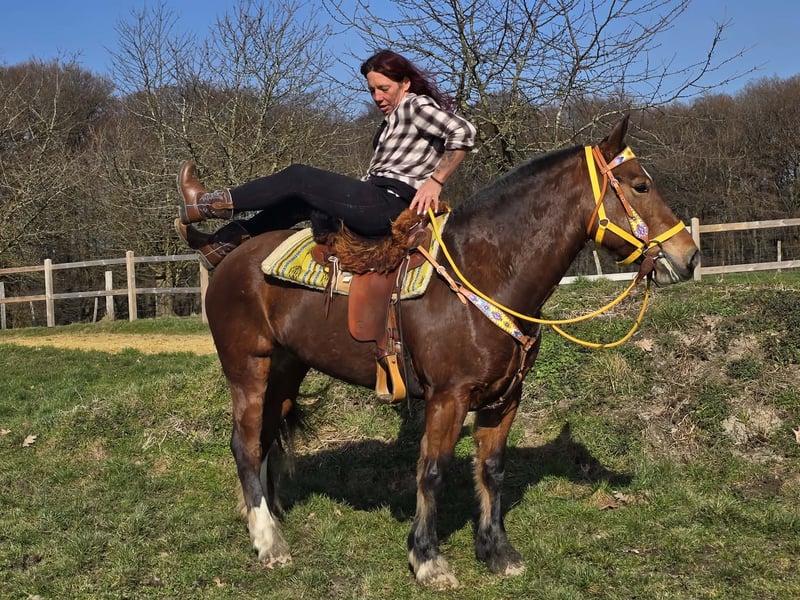 Zuverlässige Freiberger Stute – brav & vielseitig einsetzbar DEESSE ist ein echtes Traumpferd ! Alter: 8 Jahre Stockmaß: ca. 154 cm Preis:7900,- AKU: vorhanden ✨ Beschreibung: Diese 8-jährige Freiberger Stute überzeugt mit ihrem ausgeglichenen, ruhigen Wesen und ihrer angenehmen Art im täglichen Umgang. Sie ist freundlich, aufmerksam und absolut unkompliziert im Stall, beim Putzen sowie beim Führen. Unter dem Sattel zeigt sie sich zuverlässig und angenehm zu reiten. Sie arbeitet motiviert auf dem Platz und ist besonders im Gelände eine tolle Partnerin – entspannt, trittsicher und jederzeit händelbar. Zusätzlich ist sie gefahren und kennt die Arbeit vor der Kutsche. Auch hier präsentiert sie sich brav und sicher. Eine ehrliche, vielseitige Freizeitpartnerin, die ihrem Reiter stets ein gutes Gefühl gibt. Geeignet für: Freizeitreiterinnen und Freizeitreiter, die eine ausgeglichene, geländesichere und auch gefahrene Stute suchen. Ideal für entspannte Ausritte, Platzarbeit und Freizeitfahren. Unsere Pferde werden regelmäßig: – entwurmt – vom Schmied betreut – osteopathisch kontrolliert Hofladen: Westernsättel, Trensen & Zubehör Transport sowie passendes Equipment auf Wunsch günstig organisierbar Unser Service: ✅ 3 Monate Umtauschrecht ✅ Proberitt: 35 €, jedes weitere Pferd 25 € (beim Kauf am selben Tag angerechnet) ✅ 100 € Sofort-Rabatt bei Abholung oder Transport am gleichen Tag ✅ Persönliche & ehrliche Beratung Anfragen bitte ausschließlich telefonisch: 0171 – 4001968 Erreichbar täglich von 8–20 Uhr ⚠️ Keine E-Mail oder WhatsApp ⚠️ Alle Angaben ohne Gewähr