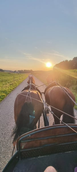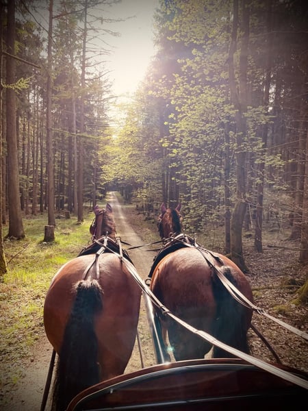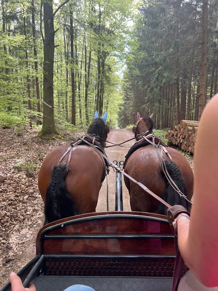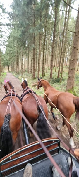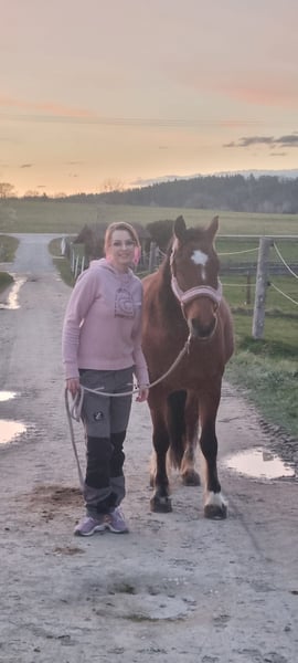 Eddie Enzo Friesian gelding Born in 2015 Barefoot Currently kept in a herd in an open stable 152 cm In mid-2023, we purchased a second Friesian from a riding school for my partner (a beginner rider). Unfortunately, he is not suitable for beginners, as he tends to buck. We had him examined thoroughly (blood tests, X-rays, gastroscopy, PSSM 1 and 2 including muscle biopsy), but nothing was found (a single mild ringbone without clinical relevance, supported by an expert opinion). Since his arrival, he has been professionally driven in 2023 (single and pair). I only drive him in the left side of the pair, and he goes really well there—happy and engaged. However, I don’t ride him so often in the cart that he gets enough exercise (which is why he is currently quite overweight). He almost daily works in the lunging arena and, despite his figure, has excellent stamina. Additionally, I have reintroduced lunging training, loading training, etc. He already knows and enjoys groundwork. Initially, I also rode him outdoors, but I felt like I was on a ticking time bomb. Since the beginning of 2024, he has not been ridden. Before us, in his previous riding school, he had different riders, was regularly turned out, and also jumped. He also participated in pony club activities with very young children. Character-wise, he is a cuddler, gentle with children, affectionate, but sometimes a nervous bundle without reason. I am selling him as a carriage horse. He can certainly be ridden (he has great basic gaits), but his strength and preference lie with driving. As a riding horse, I find him too “unpredictable.” I wish for him to be kept in a herd in an open stable or at least outside during the day (he doesn’t really know a box) and for him to have more movement and interaction than I can currently provide. He is regularly vaccinated, dewormed, and his teeth are checked annually (most recently two weeks ago). Feel free to contact me with any questions.