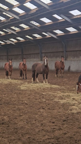 Zum Verkauf aus der Schweizer Zucht, jetzt in den Niederlanden zur Besichtigung: Ein sehr schönes Gespann aus zwei zweijährigen Freibergern mit identischen Abzeichen (wir müssen an der Trense erkennen, wer welches Pferd ist). Beide sind braun mit kleinen Sternen und hinten zwei weißen Füßen. Gutmütige, gesunde Pferde! Der angegebene Preis bezieht sich pro Pferd.