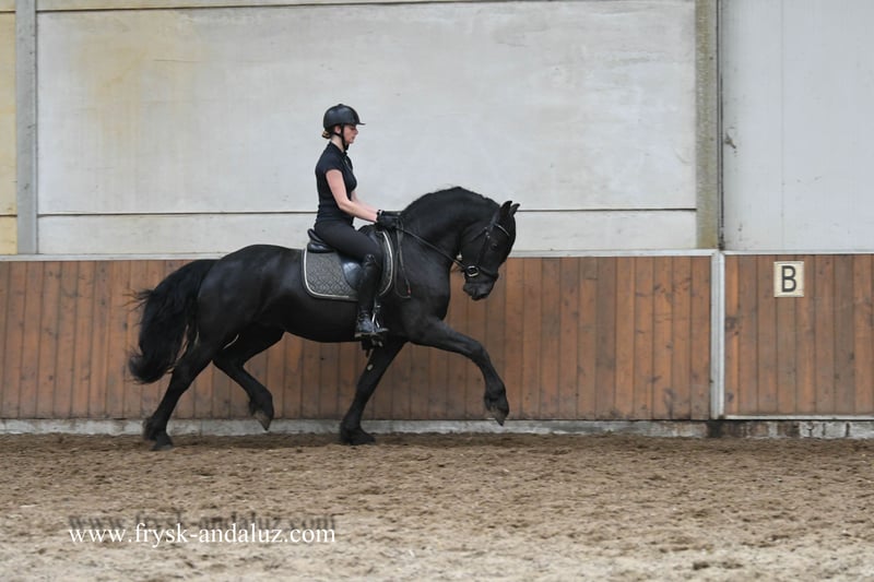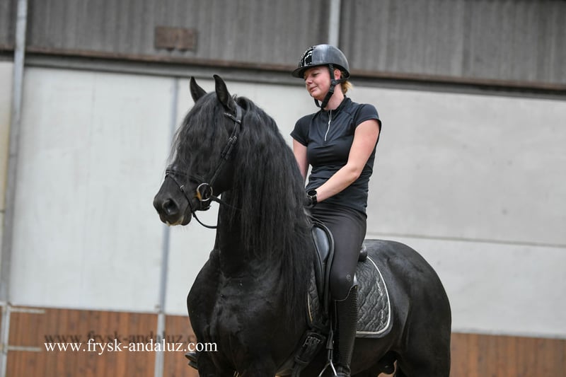 Love at first sight! What an incredibly handsome stallion Tim is. He has an amazing amount of feathering and a huge forelock; just imagine how much this will be as he gets older. Not to mention his movement! Wow wow wow, he gives you goosebumps every time. And then there's his incredibly sweet character; this boy has it all! Tim is a fully papered stallion from the combination of the outstanding sport horse sire Teun 505 Sport AAA x Ielke 382 Sport. His motherline is fully papered: Ster / Ster / Model+Pref – mother of Norbert 444 Sport+Pref / Ster+Preferent, etc. Radiologically, Tim has been found to be in order. Who is going to work with this hunk?! https://www.frysk-andaluz.com/en/horse/tim/
