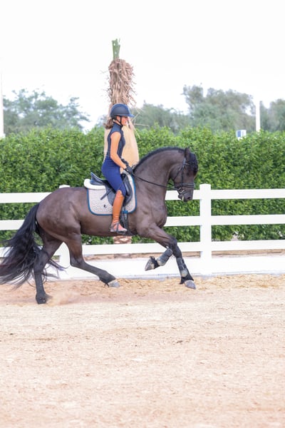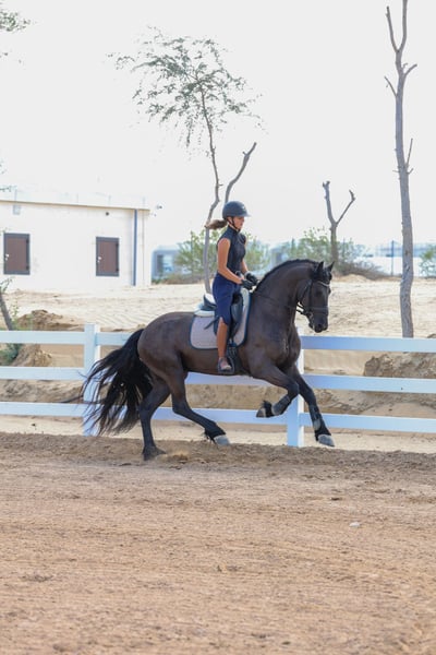 Teade Joh is an outstanding young Friesian stallion from the renowned Jehannes 484 line, and he is exactly the kind of horse that makes true Friesian lovers stop and look twice. He combines the classic Friesian presence with a modern, sport-oriented way of going and an exceptionally rideable character. What makes Teade Joh truly special is his temperament. He has a warmblood-like mindset: willing, cooperative, intelligent, and eager to work. He is not sharp or difficult, but instead thinks with his rider and enjoys his training. This makes him suitable not only for experienced riders, but also for riders who want a Friesian that feels familiar and uncomplicated under saddle. Under saddle, Teade Joh stands out with his expression and movement. He has a powerful yet supple trot, good use of the hind leg, and a natural ability to carry himself. His movements are expressive without being tense, showing balance, elasticity, and natural rhythm. He gives the feeling of a horse that wants to grow with his rider and develop further in the sport. Pedigree Jehannes 484 x Jisse His sire Jehannes 484 is known for producing Friesians with excellent rideability, strong hind legs, and sport aptitude, and Teade Joh clearly reflects these qualities. This pedigree is highly regarded for producing horses that are suitable for higher-level work while maintaining a fantastic character. Key Highlights: - Young Friesian stallion - Exceptional character with warmblood-type rideability - Expressive, elastic movements - Powerful trot with good hind-leg engagement - Willing, intelligent, and eager to work - Not sharp, thinks with the rider - Excellent sport potential - Strong and respected pedigree Teade Joh is not just a beautiful Friesian — he is a stallion with the brain, body, and movement to be developed seriously for sport or to become a top-quality riding horse for someone who wants more than just looks. 📍 Available now 🚨 Serious enquiries only A rare opportunity to acquire a Friesian stallion with true sport qualities and an exceptional mind.