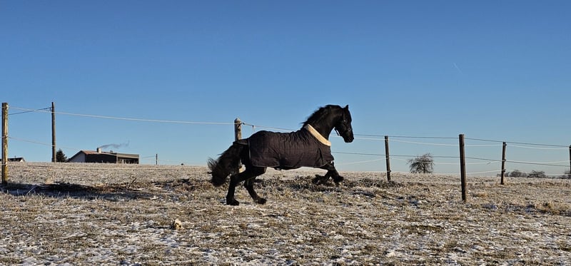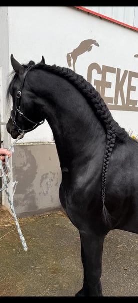 Majestätischer Ster-Friesenhengst lackschwarz mit Ausstrahlung!!! Zum Verkauf steht ein beeindruckender 5-jähriger Ster-Friesenhengst mit hervorragender Abstammung. Roy hat einen Stockmass von 163 cm und vereint Typ, Ausdruck und Qualität auf höchstem Niveau. Er besticht durch seine majestätische Erscheinung, viel Behang und einen ausdrucksstarken edlen Kopf. Seine schwungvollen, raumgreifenden Gänge mit viel Mechanik und Tragkraft machen ihn sowohl für den Fahrsport als auch für repräsentative Auftritte äußerst interessant. Charakterlich zeigt er sich absolut Kopfklar, menschenbezogen und leistungsbereit. Er ist gesund, korrekt gebaut und überzeugt durch seine positive Arbeitseinstellung. Ein Hengst mit Präsenz, Qualität und Perspektive-ideal für ambitionierte Reiter oder Fahrer die Wert auf Typ,Bewegung und Abstammung legen. Weitere Informationen gerne auf Anfrage.