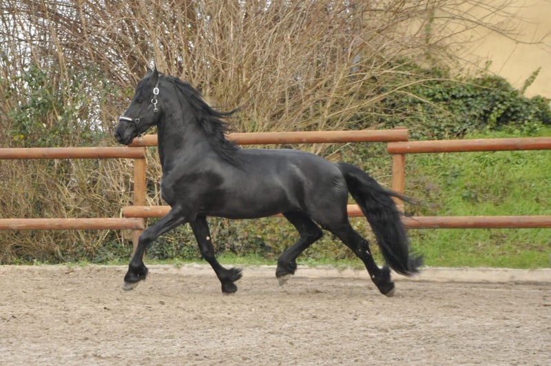 Piękny i wyrazisty fryzyjski koń z Holandii o łagodnym charakterze. Ma bardzo gęsty i długi ogon oraz jest poprawnie zbudowany. Jeźdzony w trzech gatunkach ogłowia, zna również teren i ruch uliczny. Wszechstronny fryz, którego można sobie wyobrazić zarówno jako partnera do ujeżdżenia, jak i relaksującego towarzysza rekreacji. Prosimy o zapytania wyłącznie telefonicznie.