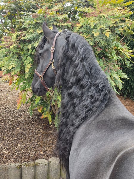 Ein wunderschöner und ausdrucksstarker Friese NL mit einem lieben Charakter. Er hat einen sehr dicken und langen Behang und ist korrekt gebaut. Er ist in den 3 GGA geritten und kennt auch das Gelände und den Straßenverkehr. Ein vielseitiger Friese, den man sich sehr gut in der Dressur, oder auch als entspannten Freizeitpartner vorstellen kann. Anfragen bitte ausschließlich telefonisch.