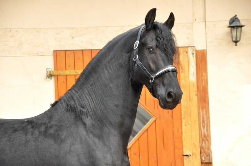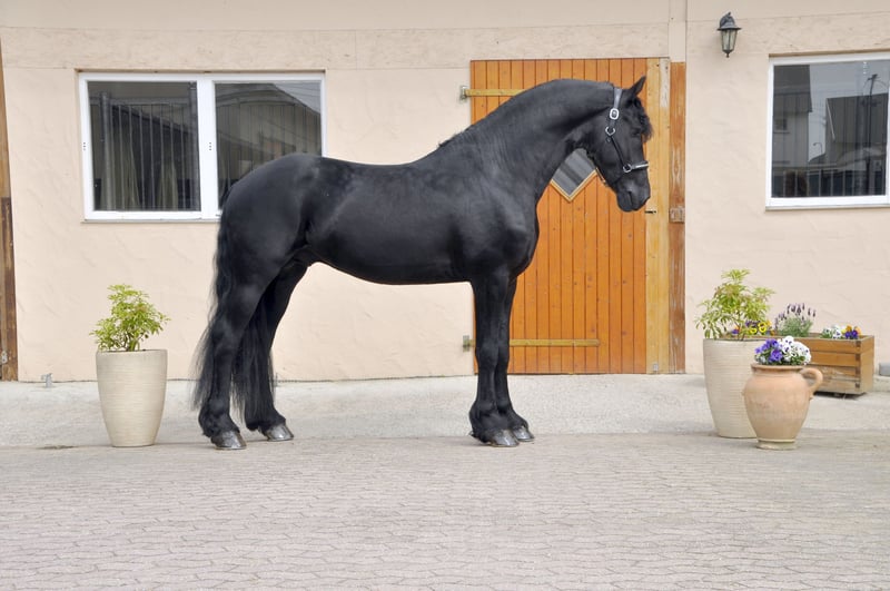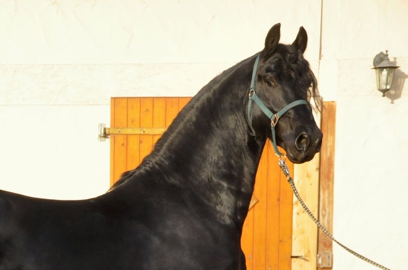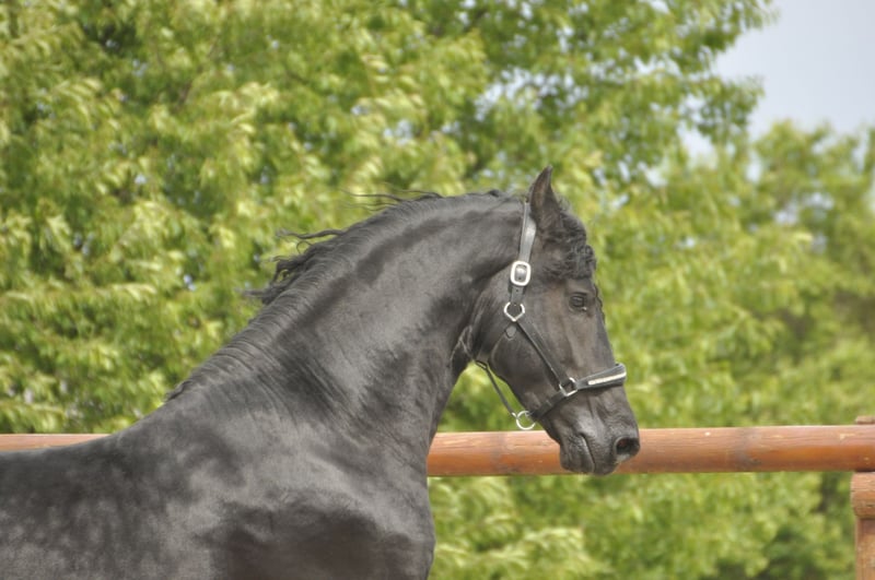 Bardzo typowy i poprawnie zbudowany ogier stacjonarny, wyróżniający się ponadprzeciętnymi ruchami i niesamowitą prezencją. Ma bardzo gęstą i długą grzywę, a jego wiek odpowiada poziomowi jazdy i użytkowania. Ze względu na to, że jest bardzo ujeżdżalny i chętny do nauki, już potrafi wykonywać galop na zewnątrz. To koń z potencjałem na wyższą dyscyplinę ujeżdżeniową! Ma niesamowity, mocno unoszący się do góry galop – to fryzyjski koń, który podczas jazdy sprawia ogromną frajdę! Przeszedł również test wydajności ogierów. Charakteryzuje się świetnym charakterem i wspaniałym nastawieniem do pracy. To koń, który po prostu daje radość – zarówno w codziennym kontakcie, jak i podczas jazdy i zaprzęgu. To wyjątkowa końska osobowość – prawdziwy wszechstronny koń. Prosimy o zapytania wyłącznie telefonicznie.