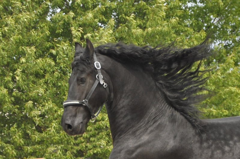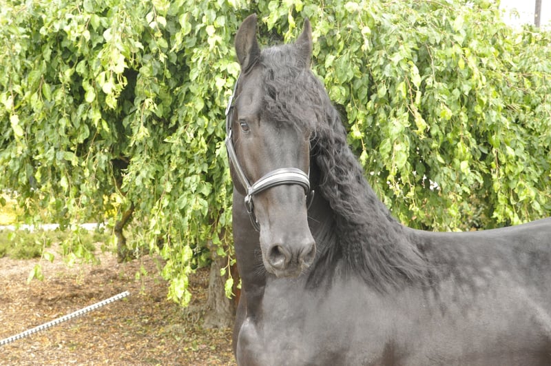 Ein sehr typvoller und korrekt gebauter Ster-Hengst mit überdurchschnittlichen Bewegungen und mega Ausstrahlung. Er hat einen sehr dicken und langen Behang und ist dem Alter entsprechend gut geritten und gefahren. Da er sehr rittig und gelehrig ist und immer gut mitarbeitet, läuft er auch schon den Außengalopp. Ein Pferd mit Potential für die höhere Dressur! Er hat einen mega Bergaufgalopp - ein Friese, der beim Reiten extrem Spaß macht! Er war übrigens im Hengstleistungstest. Er hat einen super Charakter und eine ganz tolle Arbeitseinstellung. Er macht einfach nur Spaß - egal ob im täglichen Umgang oder beim Reiten und Fahren. Ein ganz besonderes Pferd - ein absoluter Allrounder. Anfragen bitte ausschließlich telefonisch.