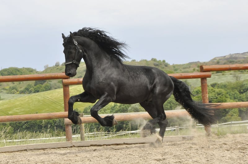 A very typy and correctly built stallion with above-average movement and incredible presence. He has a thick, long mane and tail and is well-schooled and ridden for his age. As he is very rideable, willing to learn, and always cooperative, he is already capable of performing the extended trot. A horse with potential for higher-level dressage! He has an impressive uphill canter – a Friesian that is extremely fun to ride! He also participated in the stallion performance test. He has an excellent character and a fantastic work ethic. He simply brings joy – whether in daily handling or in riding and driving. A truly special horse – an all-rounder through and through. Please contact us exclusively by phone.
