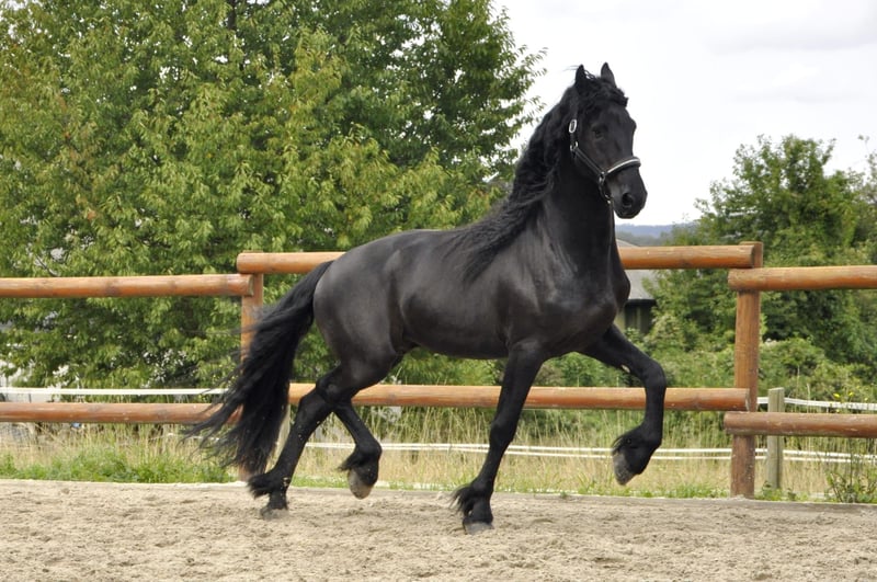 Ein sehr lieber Friese NL mit einem tollen Charakter! Er hat ein gutes Exterieur und eine sehr lange Mähne. Auch wenn er Hengst ist, hat er kein Hengstverhalten. Er ist eher wie ein Wallach, was sehr angenehm ist, auch in fremder Umgebung. Er ist in den 3 GGA geritten, mindestens auf A-Niveau, wobei er auch den Außengalopp läuft. Er hat einen normalen Fleiß, nicht zu fleißig aber auch nicht zu faul. Er kennt ausserdem auch das Gelände und den Straßenverkehr. Ausritte in der Gruppe oder alleine meistert er gut. Er ist auch 1 / 2 / 4spännig gefahren. Anfragen bitte ausschließlich telefonisch.