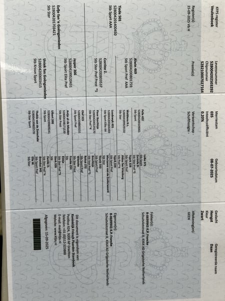 Fries hengstveulen Tiede 501 x Jasper 366 Mag december bij de moeder vandaan. Vol papier