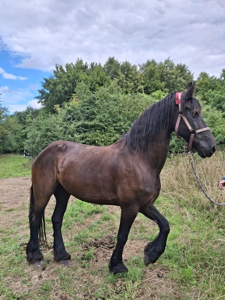 For sale is a beautiful Friesian mare. She is ridden recreationally and goes out a lot in the countryside, either alone or in a group. Currently, she is on permanent pasture in a small group, which works very well. In winter, she stays in an open stable. The farrier is no problem; she has shoes on all four hooves. She is also familiar with the veterinarian. She is a bit excited when loading but behaves well. She is being sold due to a reduction in the number of horses.
