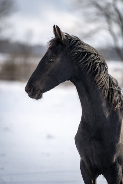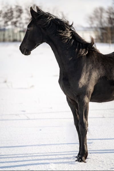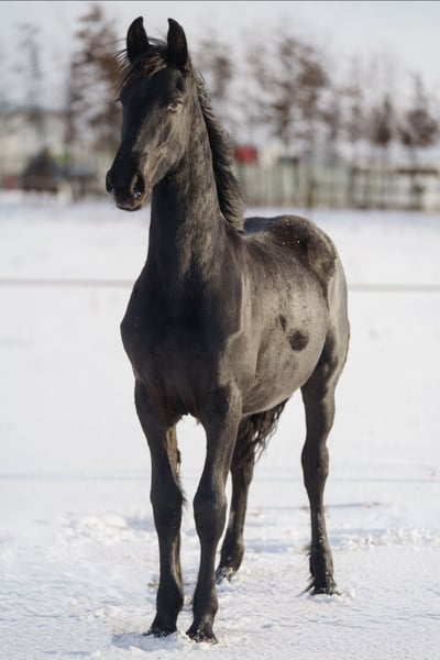 Cavalla frisona di 9 mesi in vendita. Elger 536 x Norbert 444. La madre è una mezza sorella del stallone stb Aarnold 471. Sana, abituata al paddock, coraggiosa, conosce tutte le basi come legare, dare le zampe e condurre al guinzaglio. Una cavalla di famiglia coraggiosa, ideale per l’allevamento.