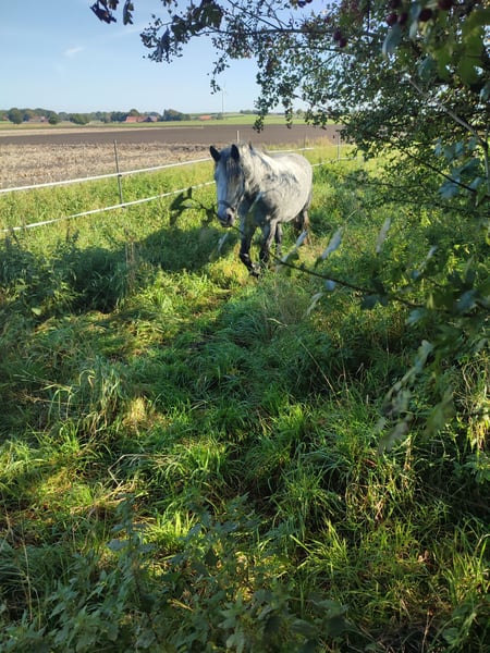 Something very special - Breed: Friesian mix - Gender: Mare - Year of birth: 2022 - Color: Gray - Height: approx. 155 cm - Suitability: Leisure, Driving, Baroque, Weight Carrier - Groundwork started - Very curious and open-minded Our "Jette" captivates with her charming nature and appealing appearance. She is well socialized and accustomed to herd living. We would like to start working with her slowly, which is currently not possible due to time constraints. She is familiar with various desensitization training and is well-behaved with the farrier and during loading. Due to her age and training level, she is not for sale to beginners. A young horse requires clear, calm guidance from people who know what they are doing. If you are interested or have any questions, we look forward to your message! Feel free to visit us to get to know this wonderful mare in person.