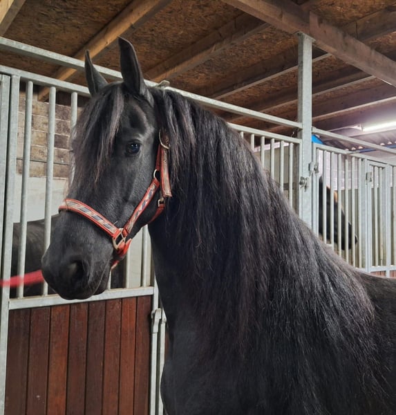 Haylinn è una splendida cavalla frisona di tipo raspa. Può muoversi molto bene ed ha una lunga criniera. Haylinn è stata utilizzata da noi per la riproduzione e non è stata addestrata alla sella o al carro. È una buona madre e ci ha dato puledri belli e sani. Haylinn non è mai stata presentata a nessuna commissione di selezione. A causa della riduzione della nostra attività di allevamento, la offriamo ora in vendita. Haylinn è incinta per il 2026, scansata da un'ecografia con il frisone stallone Nyk 538. Per ulteriori informazioni, può contattarci telefonicamente o tramite WhatsApp al +39 641043916.