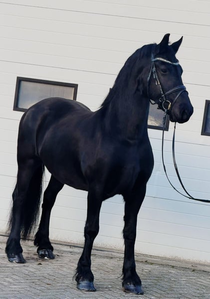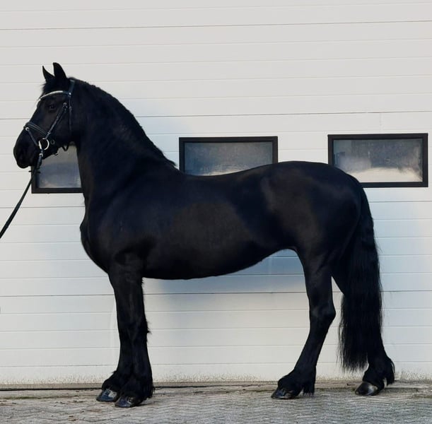 🖤 Te koop: Prachtige Friese merrie 🖤 8 jaar – ca. 162 cm Wij bieden deze mooie en stijlvolle Friese merrie aan ✨ Ze is 8 jaar oud en meet ongeveer 162 cm. Een echte verschijning met een lief en betrouwbaar karakter ❤️. In de omgang is ze zeer braaf en vriendelijk 🤍, fijn in de dagelijkse verzorging en makkelijk in de hand. Ze is beleerd voor de koets en loopt zowel éénspan als tweespan 🚘🐴, wat haar veelzijdig en betrouwbaar maakt. Een ideale merrie voor recreatief gebruik, mennen of voor iemand die op zoek is naar een eerlijke Friese dame met een fijn karakter 🌟 📩 Meer informatie of een bezichtiging op aanvraag.