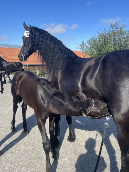 Geeske is very gentle under saddle and also performs excellently in harness. She has been backed and driven by Jelmer Chardon in the Netherlands. She has given birth to two wonderful foals, all very straightforward and in excellent health. She is a tall mare, always willing to participate in various activities, calm in handling, and very trusting. Please feel free to contact via WhatsApp or call at +49 151 214 050 24.