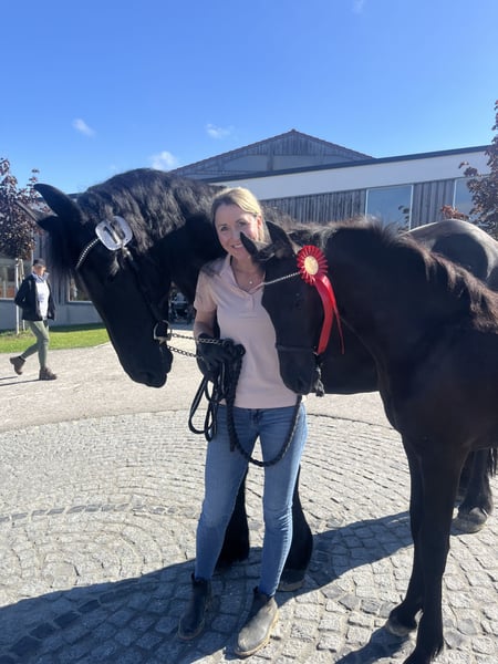 Geeske es muy tranquila bajo la silla y también se desempeña excelente en el carreto. Entrenada y rodada por Jelmer Chardon en Holanda. Ha dado a luz a dos maravillosos potros, todo de manera muy sencilla y con excelente salud. Es una yegua grande, que siempre está dispuesta para todo, tranquila en su trato y muy confiada. Para cualquier consulta, no dudes en enviar un WhatsApp o llamar al +49 151 214 050 24.