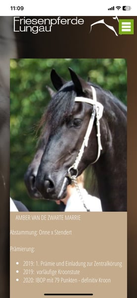 Qualitätvolle Friesenpferde 1. Stutfohlen: Hilbrand x Epke SEHR qualitätvolles Stutfohlen mit hervorragender Bewegung 2. vielversprechende Jungstute Geb. 05/ 2024 Gosse x Onne (Mutter Kroon) Hervorragende Jungstute (1,5 Jahre ) aus sehr erfolgreichem Zuchtstamm, absolut modern, korrekt gebaut und talentiert Sehr interessante und vielversprechende junge Stuten für Zucht, Sport oder Freizeit. Beide haben einen tollen Charakter und volles Papier! 3. Rarität: 9 j Kroonstute Geritten und gefahren (aktuell aber in der Zucht) Über 1.20 Meter Mähne 171 cm Stockmaß Onne x Stendert Hervorragende extrem rassetypische Stute mit top Charakter, bringt sehr schöne, bewegungsstarke typvolle Fohlen mit sehr liebem Charakter! Preis der Qualität entsprechend !! Bei Interesse sende ich gerne Videos. Weitere Infos und Preise gerne auf Anfrage! Besuchen Sie uns auch gerne im Internet - „Friesenpferde Lungau“