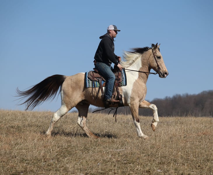 💎 𝐓𝐇𝐄 𝓓𝓲𝓪𝓶𝓸𝓷𝓭 𝐒𝐇𝐎𝐖𝐂𝐀𝐒𝐄 💎 Happening now thru MONDAY | FEBRUARY 23rd - Available EXCLUSIVELY on HorseBid's website! For more details and to register visit: www.Horsebid.com CONSIGNOR CONTACT: Korey Patrick 606-310-2428 LOCATION: Brodhead, KY BREED: Friesian Cross REGISTERED: No REGISTERED NAME: COLOR: Buckskin Tobiano HEIGHT: 15.3 AGE: 10 GENDER: Gelding If you want color, class, experience and a nice ride... James is your guy! James is a super cool, buckskin tobiano, Friesian Cross gelding that is standing around 15.3hh and he is very well built. He is 10 years old and he has all the good looks, and with miles of experience to go along with it! James has been trail ridden throughout Kentucky, Tennessee and Virginia and he knows all about traveling and trails. He will cross creeks, ditches, logs and navigate rough rocky areas. He moves around real nice and is content to plod along down the trails as well! He has been exposed to all kinds of wildlife such as deer or turkey and will go anywhere that he is asked too. He will go up or down even the steepest slopes, across deep creeks, over downed trees, and over all types of rough terrain while still being sure footed. James has been ridden down the highways and is traffic safe. He is not cinchy, cold backed, does not crib or weave. If you want flashy, substance and safe... James is a great choice! Feel free to call Korey Patrick 606-310-2428 with any questions. Located in Brodhead, KY