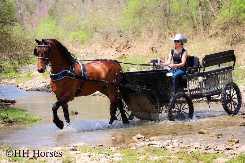ONLINE AUCTION Place your bids at www.PlatinumEquineAuction.com Starting Bid $3500 Auction ends May 4th, 2025 Need a new saddle? Check out White Rock Saddles on our website or Facebook! This is “LIMITED EDITION”, a real civilized, well mannered, well trained, attractive, and intelligent REGISTERED BAY FRIESIAN SPORT HORSE GELDING that is broke to ride and drive. This gelding is 15.3 hands tall and is 11 years old. He has been shown in English & Western classes, he trail rides, and rides nicely in the arena. He has been out in the pastures to check cattle and been on the main roads into town. He has been through the cross country driving courses and been in women’s driving pleasure classes. He is super easy and safe as well as honest and obedient. If you want a user friendly horse that anyone can tack up and ride and one that anyone can hitch up and drive, then he is for you. He unloads in new territory and will ride off as if he has been there many times before. This type of horse doesn’t often come up for sale. He is smart and loves attention and people. He loves to ride and be out in the woods. He has been in parades, at the state parks, and out in the deep timber. He has tons of heart, stamina, and ride. He is sure footed, comfortable, responsive, and well mannered. Don’t miss out if you want an extremely nice registered FRIESIAN SPORT HORSE GELDING. For more info or to make a Buy It Now offer contact HH Horses Erin 304-238-4155 Located in Flemingsburg, KY. ONLINE AUCTION Place your bids at www.PlatinumEquineAuction.com Starting Bid $3500 Auction ends May 4th, 2025 Need a new saddle? Check out White Rock Saddles on our website or Facebook!