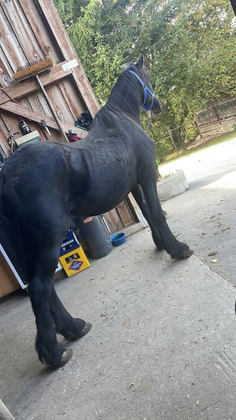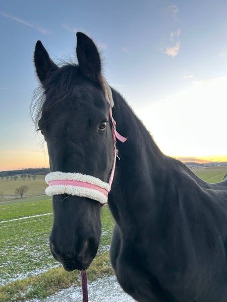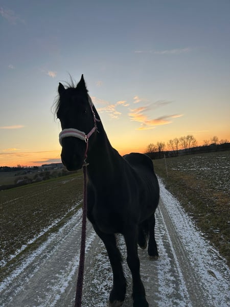 Leider muss ich mich aus privaten Gründen von meinem lieben Friesen trennen , er ist eine Lebensversicherung, am Platz sowohl im Gelände . Keine Unarten und immer lieb .