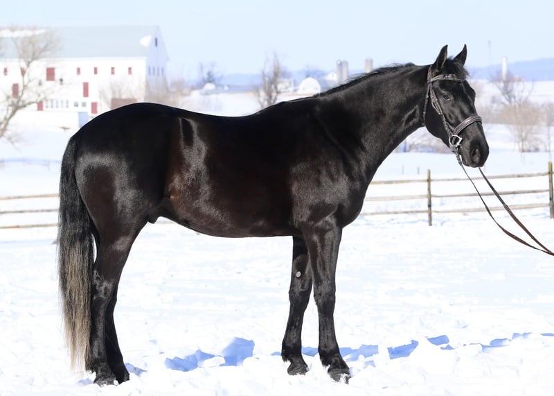💎 𝐓𝐇𝐄 𝓓𝓲𝓪𝓶𝓸𝓷𝓭 𝐒𝐇𝐎𝐖𝐂𝐀𝐒𝐄 💎 Happening now thru MONDAY | FEBRUARY 23rd - Available EXCLUSIVELY on HorseBid's website! For more details and to register visit: www.Horsebid.com CONSIGNOR CONTACT: CM Farms 717-875-2061 LOCATION: Gap, PA BREED: QH/FriesianX REGISTERED: No REGISTERED NAME: Tonka COLOR: Black HEIGHT: 15.1 AGE: 3 GENDER: Gelding Meet ✨Tonka!✨ Tonka is a jet-black, 3-year-old QH/Friesian cross gelding standing right around 15.1–15.2hh. From the moment he stepped into our barn, he has been a breath of fresh air. He is incredibly fun, sensible, and wise beyond his years. Tonka truly has the best attributes of both breeds — curves for days, good conformation, and stunning looks. He’s a lighter-built cross, making him super versatile for a variety of disciplines! He’s been started Western, English, bareback, and has been started to drive. His work has stayed light at this age since he’s still maturing, but Tonka is the kind of smart that genuinely loves to learn and picks things up so fast. On the ground, he is an absolute lover with a young, vibrant personality you can’t help but fall in love with. 🤩 In the ring, Tonka already has a great start. He stands quietly to mount from the block or the ground, has a nice forward walk, a lovely adjustable little trot, and a rocking-horse canter to die for. He’s naturally balanced, gets the correct leads every time, can easily walk to canter, and is light and responsive to ride. He’s started going with some connection, moving off the leg, and learning to use himself properly. He’s comfortable, safe, has no bad habits, and is truly at a point where he could go in any direction and succeed — he’s a showstopper. ⭐️ This guy comes with solid brakes and will stop on a dime off your seat or a voice cue. Tonka is an absolute superstar with a great work ethic and a true will to please. He’s had lots of “craziness” thrown at him and continues to be nothing short of impressive. He’s seen tarps, smoke, equipment, traffic, dogs, flags, chickens, mini bikes, cows, pigs, ground poles, and he’s even walked through fire without batting an eye. He’s brave and confident while still being quiet, forgiving, and able to take a joke or rider mistake.☺️ On the trail, Tonka will happily lead or follow. He loads right up into the trailer and genuinely enjoys going on adventures. He’ll ride the winding wooded trails or canter out in open fields. He crosses water, logs, and bridges, and is used to hikers, dogs, bikers, and all the wildlife you find on busy trails. He’s an especially fun ride to take out and would absolutely excel at fox hunting or paper chasing. Even though he’s young, he’s wise beyond his years and is safe, reliable, and the same horse every ride. In the barn, Tonka is such a fun guy. He’s curious and a little nosey in the best way!😅 He always wants to know what you’re up to, and he’ll inspect everything! He thrives on attention and will stand on the crossties all day to be groomed, tacked, and loved on. He has good manners for the vet and farrier, picks up his feet easily, is quiet and well-behaved in his stall, and easy to handle for turnout and bring-in. He’ll literally run up when he sees you in the pasture! 😆 Tonka LOVES to play with the other young geldings and has a big personality that will keep you laughing. While he’s still young and learning, we truly couldn’t ask for a better young horse. He’s incredibly special, and we only see great things in his future. We’re looking for the absolute best home for this goofy, one-of-a-kind gelding. 🩶 UTD on Shots, Coggins, Dentist, Farrier, and Deworming.