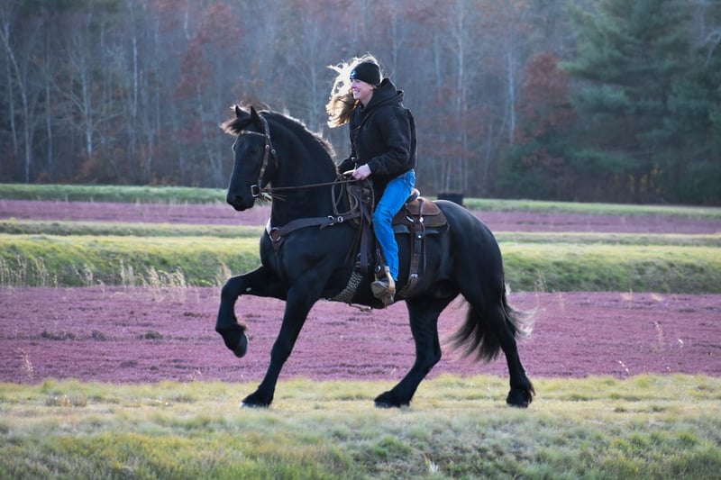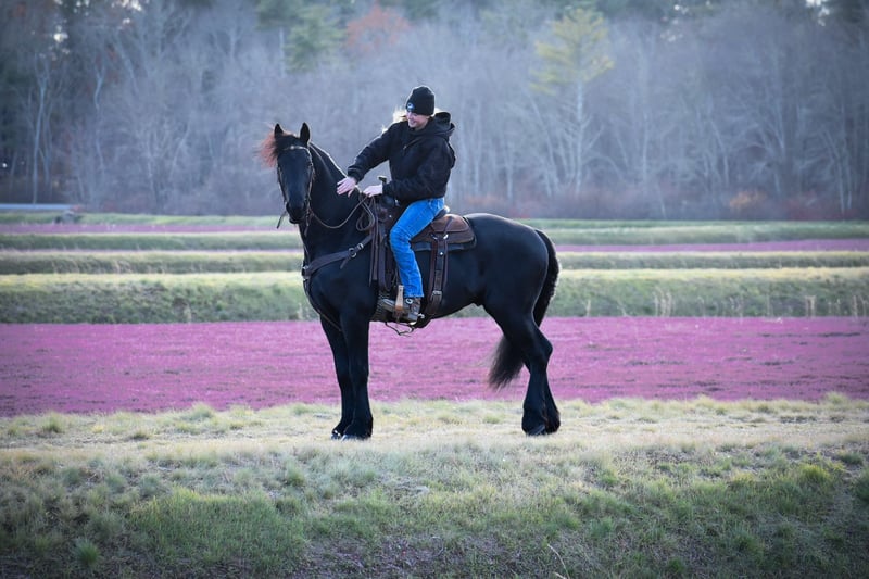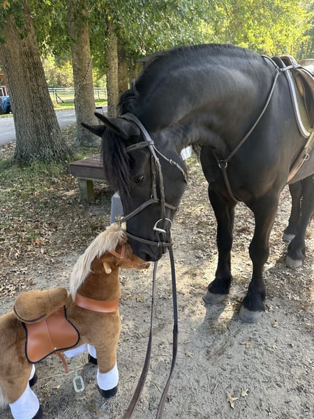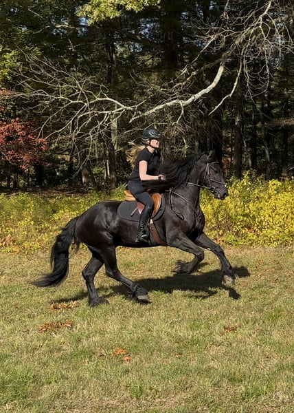 ⚜️ 𝓽𝓱𝓮 𝐇𝐨𝐫𝐬𝐞𝐦𝐚𝐧'𝐬 𝓢𝓱𝓸𝔀𝓬𝓪𝓼𝓮⚜️ Happening now thru MONDAY | DECEMBER 1st - Available EXCLUSIVELY on HorseBid's website! For more details and to register visit: www.Horsebid.com CONSIGNOR CONTACT: All Around Equine 401-261-0644 LOCATION: Rochester, MA BREED: Friesian Sport Horse REGISTERED: Yes REGISTERED NAME: Kaptain Pierce COLOR: Black HEIGHT: 16.2 AGE: 4 GENDER: Gelding ⚔️ Kaptain Pierce ⚔️ Registered 87.5% Friesian - 6.25% Morgan - 6.25% Percheron Ready to meet the most incredible horse I have ever had the pleasure of offering for sale?! Meet Kaptain.. He is just as, if not more stunning in person than any picture could capture of him. Everywhere he goes, he turns heads with his presence and kind demeanor. I’ve never met a horse quite like him! One minute, he can be working and putting every ounce of effort into his ride with me. And the next, he will be nuzzling my 8 month old son with kindness and quietness you just can’t train into one. Sometimes, they just have it. And Kaptain has it. Kaptain and I have done so much together! Countless arena rides, having fun playing with dressage/western/huntseat/bareback. Miles and miles of trails together. Hunter paces, off property adventures, and hours and hours of grooming and loving on him! If there is one thing for certain about this sweet, young horse it is that he tries with his all every time you step foot in that stirrup! He is not a hot ride and will go at whatever pace you pick. I have had every single level of rider on him and he adjusts and takes care of EVERYONE that has sat on his back. You will be smiling once you step off of him! The possibilities are truly endless for Kaptain. Pick your discipline and climb to the top with him. Or… Be like me! And take him to a hunter pace one day and a cow sort the next. He is game for whatever you point his nose towards. In water, over bridges (even the teeter totter bridge! He loves it!), across open fields, down the road, you name it and Kaptain has done it and will do it happily! Recently, we participated in the Massachusetts Equine Affaire! This horse blew me away at this extremely busy event. He was BRAVE, gentle and the same exact horse as he is at home in one of the most hectic environments. He trotted right into the daunting coliseum and strutted his stuff in front of hundreds of people. I was more nervous than he was, and he took care of me the entire time! He is the quietest horse to trailer, he hops right on and you can’t feel him the entire ride. Settles right in to a new place with zero anxiety or issue. Super easy keeper, 0 maintenance, beautiful hoof (he wears front shoes because we trail ride so often), big solid bone… and of course that HAIR 🤩. Kaptain has NO buck bolt or rear. He W/T/C both directions, responds extremely well to leg pressure, you can ride him with or without spurs, is soft in the bridle and has jumped small jumps (very minimally, as he is young) bravely! He would thrive in so many disciplines I truly couldn’t list them all. He loves a bath, clips, ties to anything, loves the farrier and vet.. ETC. He sounds too good to be true, but this horse has proven himself to me time and time again. He really is one in a million.