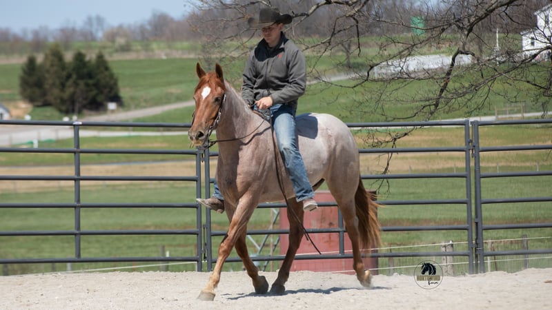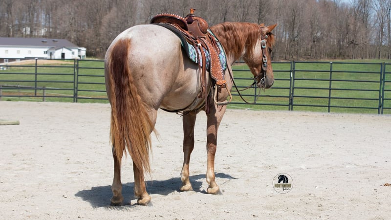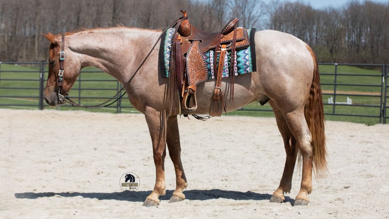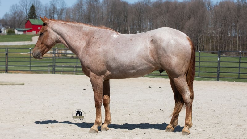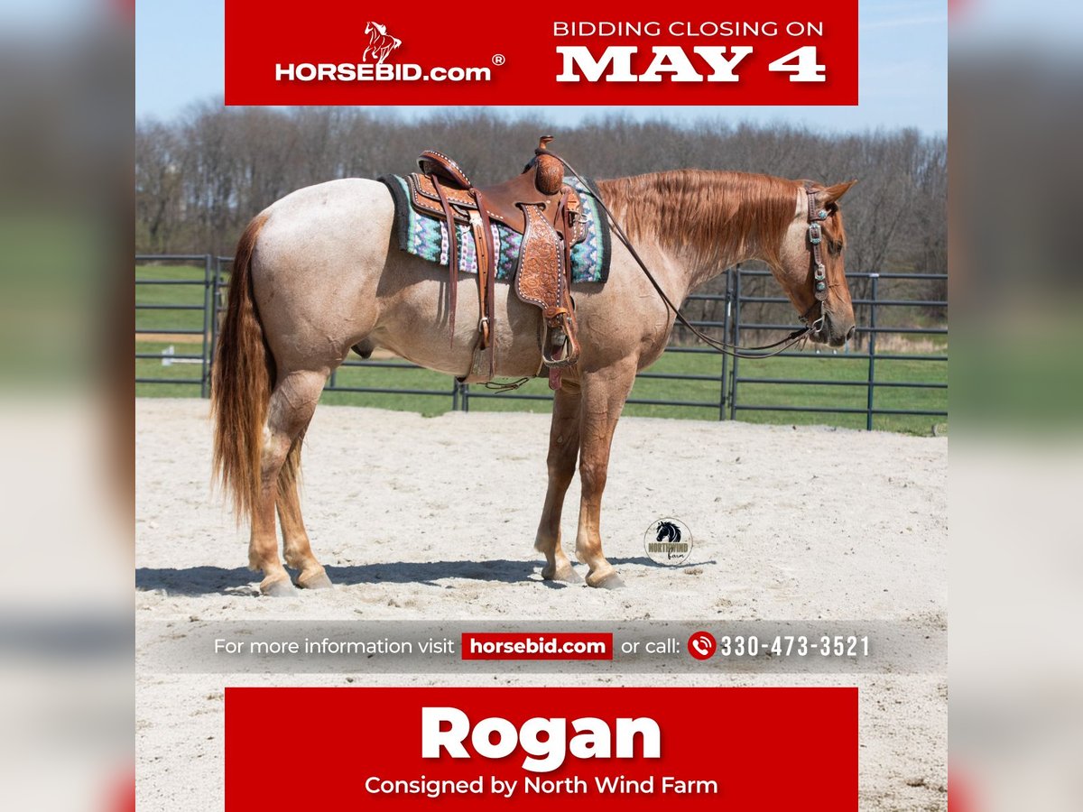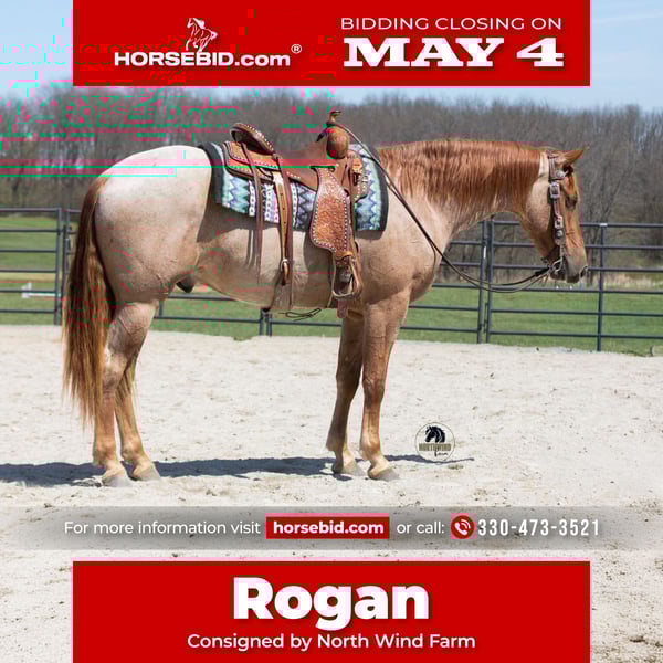 ▪️▫️◾️𝐭𝐡𝐞 𝑴𝒂𝒚 𝐒𝐞𝐥𝐞𝐜𝐭◾️▫️▪️ Happening now thru MONDAY | MAY 4th - Available EXCLUSIVELY on HorseBid's website! For more details and to register visit: www.Horsebid.com CONSIGNOR CONTACT: North Wind Farm 330-473-3521 LOCATION: Fredericksburg, OH BREED: Friesian cross REGISTERED: No COLOR: Red roan HEIGHT: 15.3 AGE: 4 GENDER: Gelding Rogan is a 4 yr old red roan Friesan/quarter horse gelding standing at 15.3hh. Rogan is well broke to ride both English and western! He has a puppy dog personality and adores attention! He Enjoys turn out and can be out in the pasture with other horses! He is easy to catch in the pasture! Rogan will stand nicely for grooming, tackling up, bathes, and getting his feet done! He has good ground manners and is very respectful! Rogan rides very well in the arena, he will pick up both leads, he stops easily, and backs up. He has a flowly walk, trot, canter. His canter is a dream! Rogan will neck rein and direct rein. He moves off of leg pressure as well. He has been started on jumps and absolutely loves it! He is confident going up to the jump and always gives 110% effort. He would be suitable for a begginer or novice jumper, he takes care of his rider! Rogan will also trail ride! He goes through creeks and mud! He is surefooted in the hills and has also been rode on the road! Rogan is used to being around dogs and atvs. He will also go through the obstacles! Rogan is a very well mannered gelding looking for his forever home!