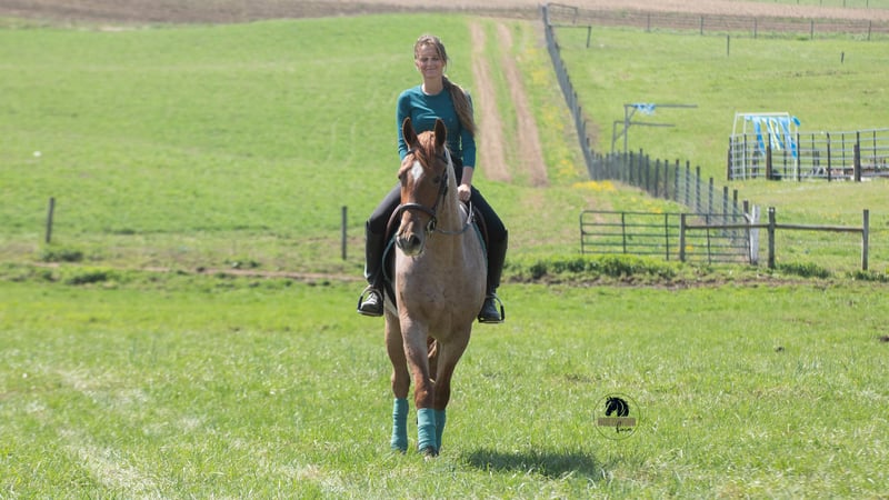 ROGAN, 4 jaar oud, 15,3 hh, rood-roan Friesian-cross ruin.