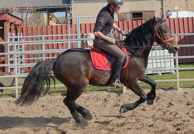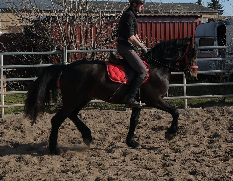 Bewegungsstarker schicker Friesenmixwallach. Sicher im Straßenverkehr und Gelände. Eddy ist auch einspännig gefahren. Ein optimales Hobbypferd und auch für Reitbetriebe geeignet. 5 Jahre, 157cm Bei Interesse bitte anrufen, keine Mail! Für eventuell auftretende Fehler in der Beschreibung gilt keine Gewähr! Tel.: 0173-3843407 Da es sich um ein lebendes Tier handelt, sind dies subjektive Eindrücke des Anbieters und keine zugesicherten Eigenschaften des Tieres! Ständig schöne Fahr-u.Freizeitpferdesowie neue Kutschen verschiedener Modelle preiswert im Angebot. Anschrift Stall: 99628 Buttstädt, Oberwendenstraße 39
