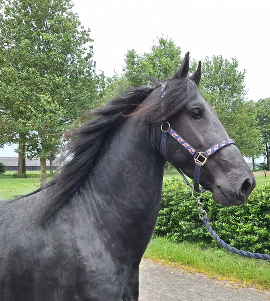 Rens is a cheerful 4-year-old Friesian gelding. He is approximately 1.64m tall and moves well. He is breed-typical, luxurious, and correctly built. Rens is saddle-trained and is currently being further educated. He is well-behaved with the farrier and is familiar with traveling in a trailer and truck. For more information, it is best to contact via WhatsApp or by phone at +31641043916.