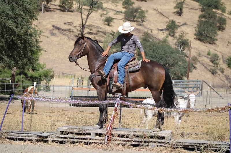 ONLINE AUCTION Place your bids at www.PlatinumEquineAuction.com Starting Bid $3500 Auction ends July 27th 2025 Need a new saddle? Check out White Rock Saddles on our website or Facebook Meet Echo, the stunning Friesian/Appaloosa cross that turns heads everywhere he goes! Echo is a striking leopard blanket bay with varnish and bold black spot and he is a true living masterpiece. At 5 years old and standing 15.1 hands tall, he has the kind of presence and elegance that’s truly unforgettable. His natural headset, fluid movement, and soft, supple feel make him a dream to ride in the arena. He lopes correct, easy circles, has a smooth stop, and backs up effortlessly. Echo is more than just looks—he’s confident, calm, and extremely well-rounded. He’s been exposed to busy streets, parades, flags, tarps, giant balls, and obstacle courses—and takes everything in stride without hesitation. On the trail, he’s sure-footed crosses water, logs, and tough terrain like a pro. He has also been used around the ranch. With his unique style and fluid movement, Echo would look absolutely stunning in English tack and could easily transition to English disciplines. Echo also has a fun, personality that makes him a joy to be around. He clips, ties, and bathes with ease. Whether you’re looking for a trail partner, arena star, or all-around best friend, Echo is the kind of horse that brings joy to every ride. Located in Paicines, CA. For more info contact Dina with Longhorn Ranch 831-537-1915 with any questions. ONLINE AUCTION Place your bids at www.PlatinumEquineAuction.com Starting Bid $3500 Auction ends July 27th 2025 Need a new saddle? Check out White Rock Saddles on our website or Facebook