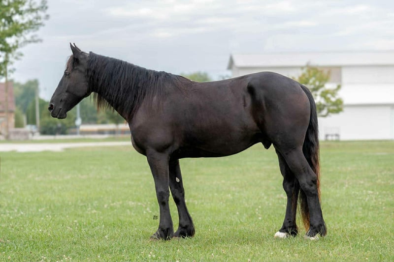 Helmuth 6-Year-Old Black Friesian Sporthorse Gelding | 16.1 Hands Helmuth is a striking six-year-old black Friesian Sporthorse gelding standing 16.1 hands tall, offering a rare combination of elegance, versatility, and true usability. He is exceptionally well broke to ride both Western and English, is one-hand neck rein broke, and will even slide to a stop like a seasoned Quarter Horse. Helmuth is trained in dressage movements, is very soft in the face, and is responsive yet forgiving—making him a pleasure to ride for a wide range of horsemen. Beyond the saddle, Helmuth is an outstanding driving horse, working confidently single and double. He has been driven in downtown parades, around heavy traffic, and even with fireworks, trains, and Harley-Davidson motorcycles without hesitation. Traffic, noise, and commotion do not bother him in the least. Helmuth’s ground manners are impeccable. He is easy to catch in both large pastures and small lots, stands quietly for the farrier, loads, clips, and hauls like a true gentleman. He will lower his head to be bridled or haltered—even by a child—and stands like a statue for mounting and dismounting from a block, trailer fender, picnic table, or other obstacles. He is respectful in a herd setting with other horses and ponies. This gelding has seen real work. He has been ridden in the mountains and canyons, crossed railroad tracks with trains passing, gone barefoot or shod on all terrain, and has been used to move hundreds of head of crossbred cattle from pasture to pasture. He also loves the water—happily riding through rivers and swimming with children. Helmuth is 100% sound, up to date on all vaccinations and worming, and is truly a one-of-a-kind all-around horse—equally suited for a ranch family, an experienced rider seeking a versatile mount, or someone wanting a top-quality buggy and driving horse. 📞 319-721-7714 Plenty of videos available upon request.