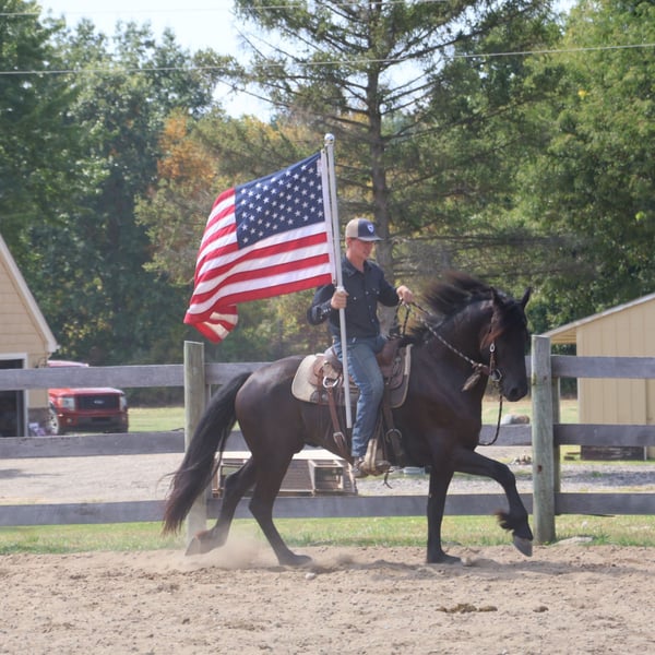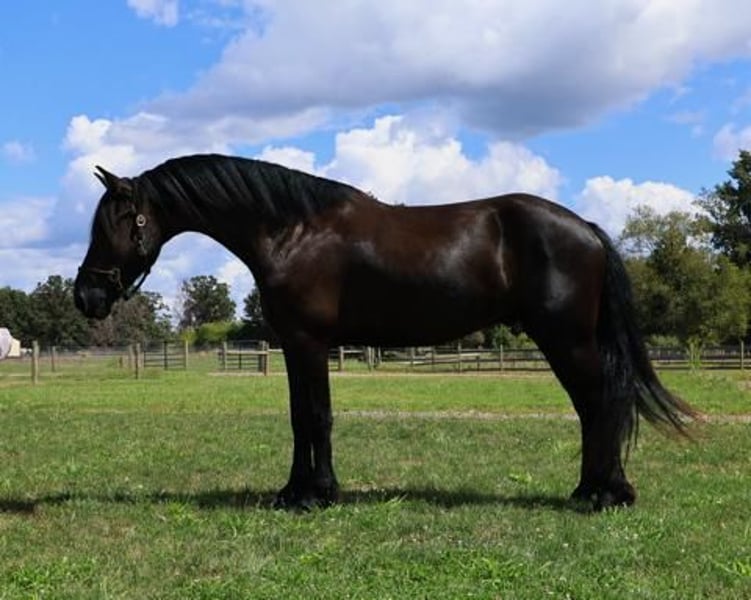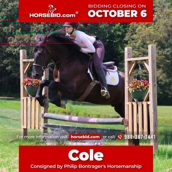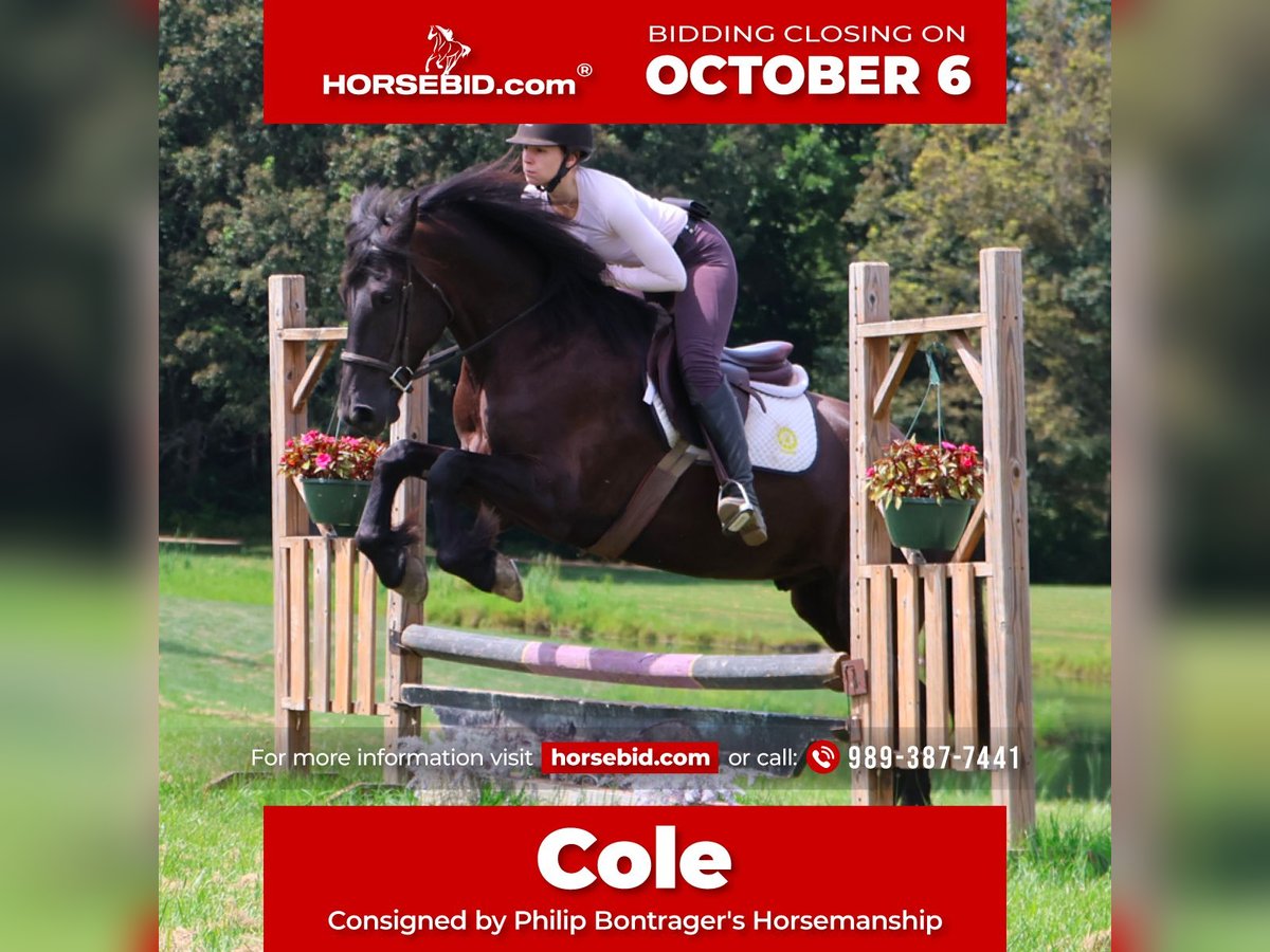 🍂 𝓐𝓾𝓽𝓾𝓶𝓷 𝑨𝑳𝑳 𝑺𝑻𝑨𝑹 𝑳𝑰𝑵𝑬𝑼𝑷 🍂 Happening now thru MONDAY | OCTOBER 6th - Available EXCLUSIVELY on HorseBid's website! For more details and to register visit: www.Horsebid.com CONSIGNOR CONTACT: Philip Bontrager's Horsemanship 989- 387- 7441 LOCATION: Howell MI BREED: 75%Freisian 25%perchoron REGISTERED: No REGISTERED NAME: Cole COLOR: Black HEIGHT: 16.1 AGE: 5 GENDER: Gelding If you are looking for a horse who’s tall, dark, handsome and who wants to be your best friend, I would like to introduce you to Cole. He is a beautifully jet black, 5 year old, 75%Friesian 25%Percheron gelding. He is sired by Darth and out of a Percheron Friesian X mare. Cole stands at 16.1hh and is put together perfectly. He has a long thick mane and tail and feathering on his legs. If Cole was a human, he would be the life of the party and the guy everyone wants to know. If you pass his stall, he tilts his head sideways and pokes his adorable nose out to say hi! He just oozes personality. If you ask He’s a total people pleaser. He has been trained with natural horsemanship methods. Cole is very well broke walk, trot, and canter. He knows his leads and has effortless transitions both up and down. He rides in a simple snaffle and will move off of seat and leg pressure. Cole has a very well balanced canter and holds his rhythm with little guidance from his rider. Cole is schooling basic dressage moves and shows great potential. He also jumps around inside and out in fantastic form. He will not shy away from the jumps and is very easy to find a distance on. He has been out on the back roads and ridden around some of Michigan’s beautiful hunt country. Brush, hills, water, dogs, traffic, wildlife, all no issue. Cole is also broke to drive and looks stunning pulling a carriage. This is the type that will be right there for you all day, every day and do everything in his power to please. He’s safe, he’s sensible, he’s full of personality, and he is ready to find his person! He lives in Howell, MI 48855 and will speak for himself in the video. Please contact 989 387 7441.