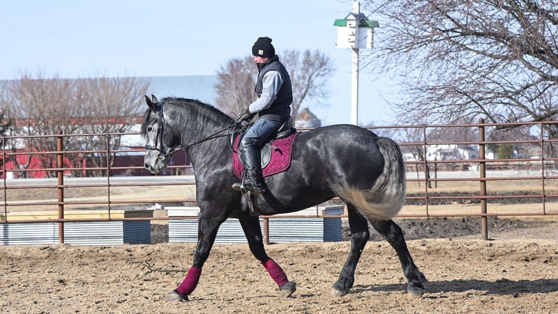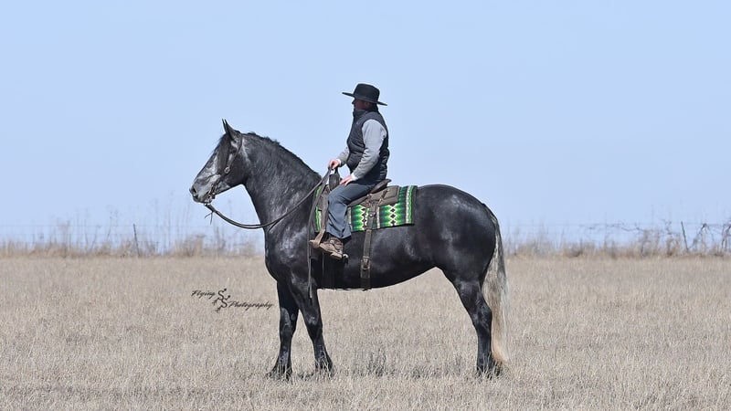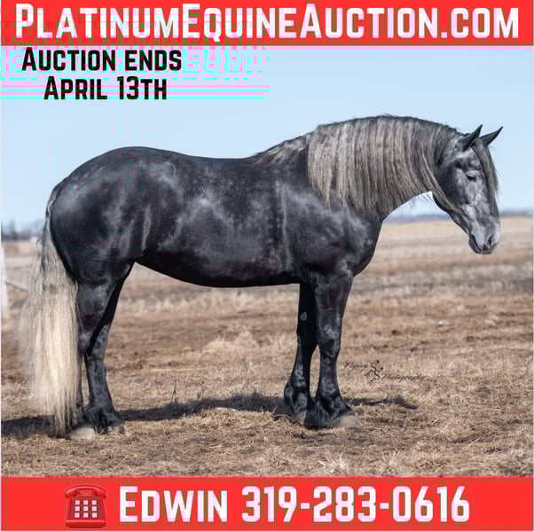 ONLINE AUCTION Place your bids at www.PlatinumEquineAuction.com Starting Bid $3500 Auction ends April 13th, 2025 Need a new saddle? Check out White Rock Saddles on our website or Facebook! If you’re looking for a show stopper, look no further! Kayla is a 5 year old registered Friesian Sporthorse. She is a knockout cross between a Friesian and a Percheron. Kayla stands 16.3 and has conformation that is as beautiful as her gray color. She rides well in the arena and outside on the trails. Kayla is traffic safe, and is used to being around other large and small livestock as well as pets and children! She will ride through an open field, down the trails, across water, through all obstacles, and down busy highways. Kayla will one-hand neck rein or plow rein, she is very soft in the bridle and leg cues. She knows how to side pass, pivot, lope correct circles picking up her leads, open and close gates, can be mounted from a mounting block or fence, and so much more! Kayla is easy to catch and does well in a stall or pasture setting, plus gets along well with other horses. She is quiet, gentle to be around, and so easy to handle. She easily picks up all of her feet, and is good for the farrier. Kayla could go so many directions, and has an excellent foundation to take her there. Whether you want to ride western, english, bareback, or simply trail ride, she is a great fit! Along with all of her experience in western riding, Kayla has been started in dressage and jumping. She is doing great with lead departures and laterals. Kayla moves beautifully, and definitely has a natural talent. She is not for a beginner, but is ready to go any direction in her training. Kayla is a very well rounded mare that will make someone a very high caliber horse! Even with time off, in the pasture or a stall, she rides off great. This outstanding mare has a solid foundation and stays honest whether she is being handled under saddle or on the ground. Kayla is current on Coggins, and also has a current PPE on file. If you have any questions, or would like to meet Kayla prior to the auction ending, please call Edwin Raber 319-283-0616 we are located in Fairbank, IA. ONLINE AUCTION Place your bids at www.PlatinumEquineAuction.com Starting Bid $3500 Auction ends April 13th, 2025 Need a new saddle? Check out White Rock Saddles on our website or Facebook!
