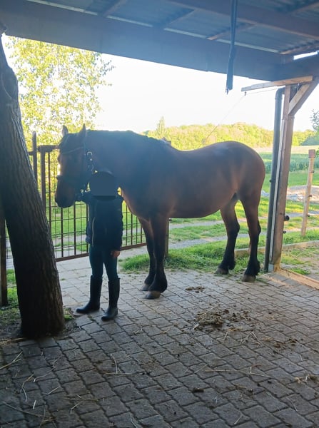Zum Verkauf steht ein wunderschöner, verschmuster 6-jähriger Friesenmix Wallach. Da wir zeitlich dem jungen Mann nicht gerecht werden können, suchen wir ein neues Zuhause für ihn. Er ist lieb im Umgang, menschenbezogen und kennt das Leben in der Herde, da er aktuelle auch im Offenstall steht. Stochmaß: ca 1,55cm Ausbildung: Gelände geritten (auch alleine), Bodenarbeit, Longe, Trail, kennt Hunde, Straßenverkehr sowie Landwirtschaftliche Maschinen. Er ist allerdings nicht für Anfänger geeignet. Er benötigt einen Menschen der ihm Sicherheit gibt. Über dem Winter wurde nicht mit ihm gearbeitet. Wir wünschen uns für ihn ein liebevolles Zuhause, in dem er gefördert wird. Bei ernsthaftem Interesse freuen wir uns über Ihre Nachricht.
