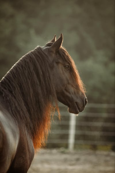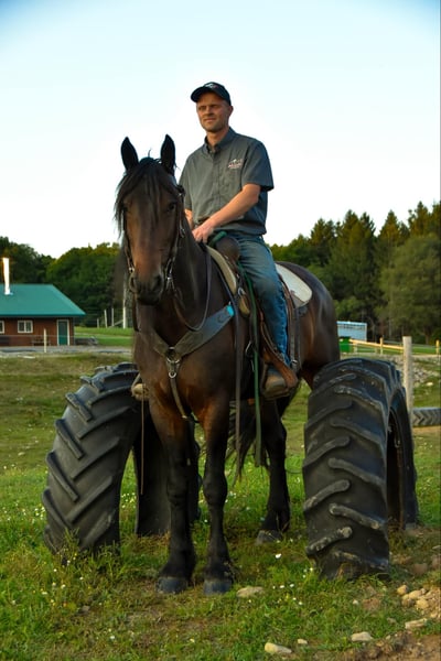 ONLINE AUCTION Place your bids at www.PlatinumEquineAuction.com Starting Bid $3500 Auction ends September 22nd, 2024 Need a new saddle? Check out White Rock Saddles on our website or Facebook! Tina’s Drew, aka “Drew,” is a 16.2-hand 2019 Friesian cross gelding. He is registered with the Friesian Heritage Horse and DNA tested. He is very smart and has a pleasing and gentle personality. He is the type of horse that comes when his name is called in the pasture and loves to get attention. You could watch him run all day; he is a very floaty mover with excellent conformation. Drew has been used in lessons with riders of all ages, multiple veteran groups, and our summer camps. He bonds with his people and wants that relationship his calm demeanor makes people fall in love with him. He is a willing boy, always down for whatever we ask! Kids handle him on a regular basis. He has excellent ground manners! No vices. No maintenance. Quiet, easygoing, level-headed, reliable mount, not sensitive skinned, turns out in a large herd of geldings and mares with various personalities and gets along with all. Mid pecking order. Respects all types of fencing. He has a great walk, trot, and canter, side passes, backs up, and knows how to use his body. This boy is fun to ride with a soft mouth and lots of impulsion; his work under saddle is always eager and happy to please. Drew has been in multiple clinics and hauled all over the state. We have had this horse since he was 2 years old! Drew loves trail riding! He has miles of trails under his feet, he will cross any water, ditches or logs you may encounter and go up or down the steepest of hills. Other livestock doesn’t bother him, cows, dogs, sheep, goats, he will make friends with them all. He loads great and will stand patiently tied all day. With his long flowing mane and sharply defined features, he has served as a model for numerous photo sessions. This is a horse you can just get on and go. Stands for the farrier, and vet. He enjoys his personal grooming time, and he is as sweet as a puppy dog. If you’re looking for a big beautiful Friesian cross that has the movement like a Friesian here he is! He is UTD on all shots and has a current coggins. Drew sells with no vices. PPE are welcomed at potential buyers expense. Contact Dayton Wolcott 585-734-0169 for more information on Drew. Located in Warsaw, NY. ONLINE AUCTION Place your bids at www.PlatinumEquineAuction.com Starting Bid $3500 Auction ends September 22nd, 2024 Need a new saddle? Check out White Rock Saddles on our website or Facebook!
