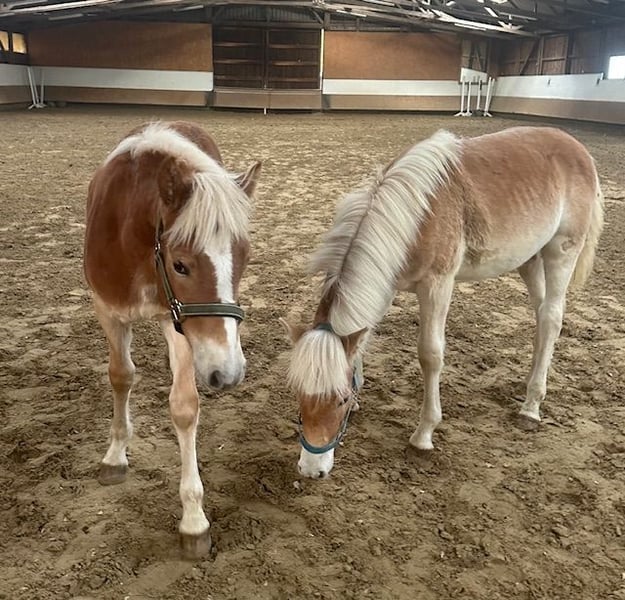 Standort: Witten( Grenze Dortmund) Unser zartes Hengstfohlen Abendstern ist am 9. März diesen Jahres in Südtirol ( Italien) auf der Alm geboren und im Oktober nach dem Almabtrieb zu uns gekommen. Genauergesagt hat es unser Tierschutzverein gekauft und somit vor einem ungewissen Schicksal gerettet, denn viele der Fohlen werden von italienischen Pferdehändlern aufgekauft und geschlachtet, nach langem und qualvollem Transport in die Schlachthäuser von Bari in Süditalien. Dieses fürchterliche Schicksal konnten wir Abendstern ersparen und nun ist er in einem Reistall in Sicherheit, zusammen mit Stutfohlen Alma, mit dem er zusammen hergereist ist, die Stute gehört uns jedoch nicht. Abendstern ist ein reinrassiger Südtiroler Haflinger mit guter Abstammung und vollen Papieren. Vater ist der schicke Alonso - D im modernen Reitpferdetyp und die Mutter ist Daisy. Abendstern ist einfach bildschön mit einem richtig edlen Kopf, ausdrucksstark und symphatisch. Er mag gern Kinder, die ihn auch schon bürsten und führen können und kennt das Fohlen - ABC, ist neugierig, recht gelassen und bisher immer brav und zutraulich. Abendstern ist nicht nur lieb sondern auch gesund, geimpft, gechipt und mehrfach entwurmt. Wir suchen nun für den kleinen Junghengst ein liebevolles und artgerechtes Zuhause, gern als Beistellfohlen zusammen mit anderen Fohlen oder zu Jungpferden, mit denen er toben und spielen kann. Abendstern kann in Witten besucht werden, Reithalle zum Vortraben vorhanden. Kontakt unter: 0170 247 1236 oder per whatsapp/ email. Videos auf Anfrage. Verkauf durch Verein Notfelle im Revier e.V. - Witten